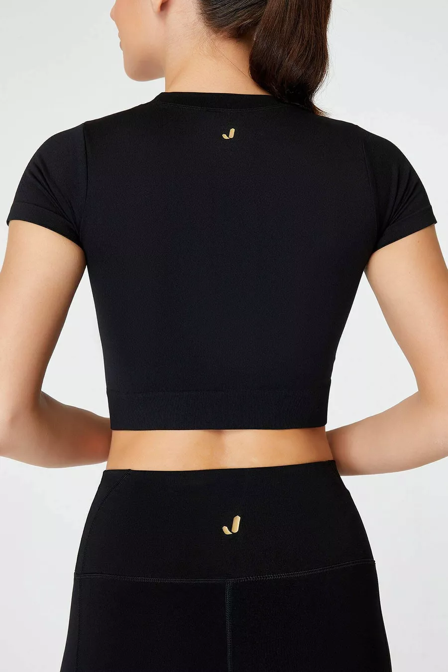 Дополнительная характеристика: эластичный Коллекция: Basic Узор: однотонный Крой: обычный Тип воротника: круглый Цвет: черный Материал: полиэстер Тип ткани: трикотаж Тип рукава: короткий рукав Технология ткани: быстросохнущая Состав материала: 53% полиэстер, 42% полиамид, 5% эластан Инструкции по стирке: Тип 1 Длина: укороченная Силуэт: укороченный Длина рукава: короткая Детали устойчивости: нет Сфера использования: повседневная Происхождение: Турция Комплектация: одинарный