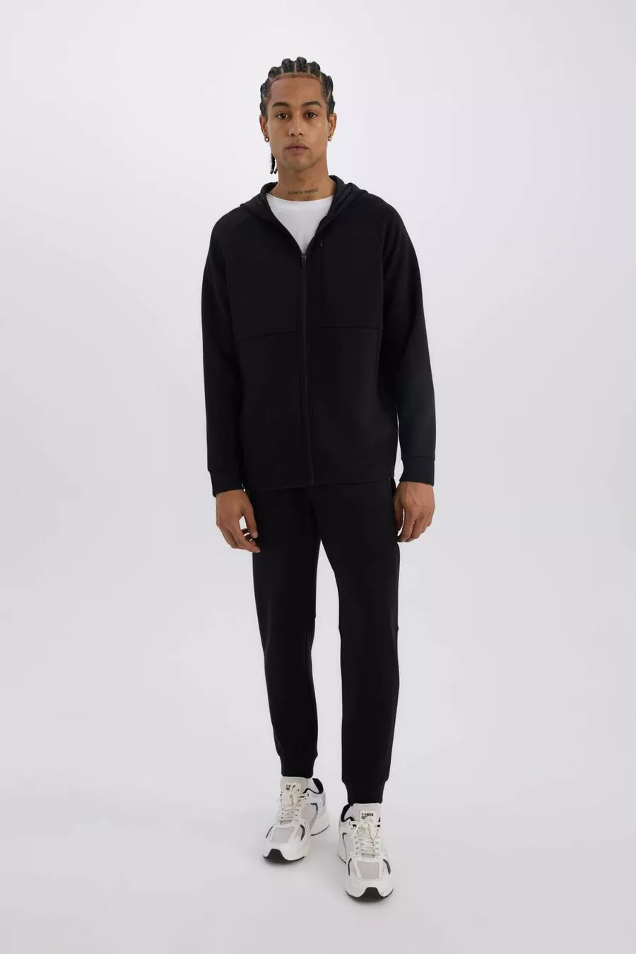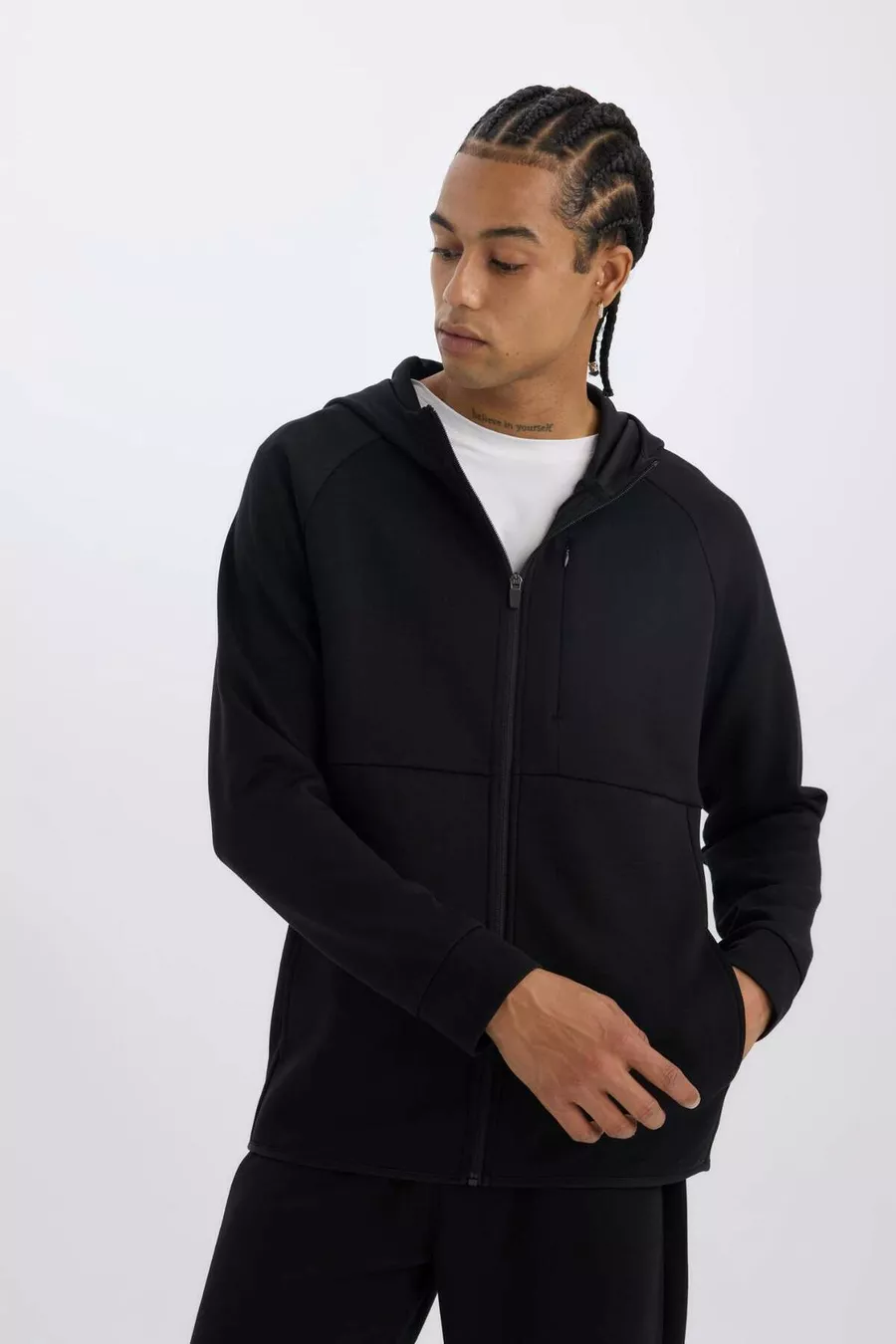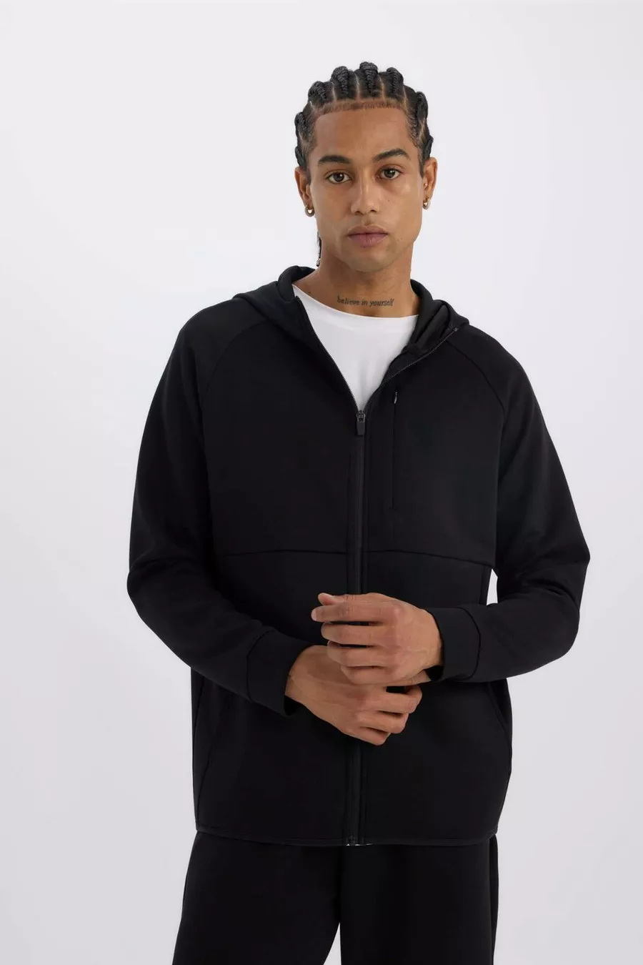 DeFactoFit Slim Fit Узкий Капюшонный Спортивный Свитшот из Скьюба Неопреновой Ткани на Молнии AU