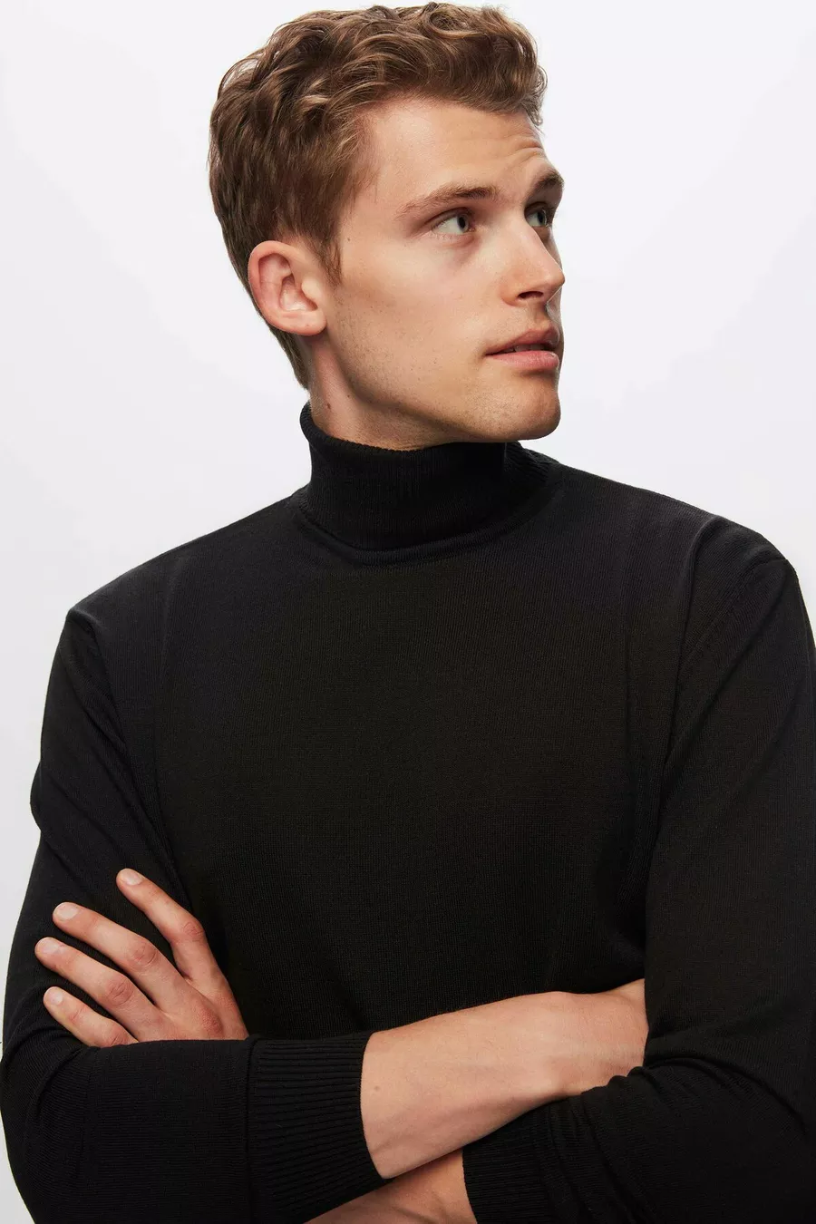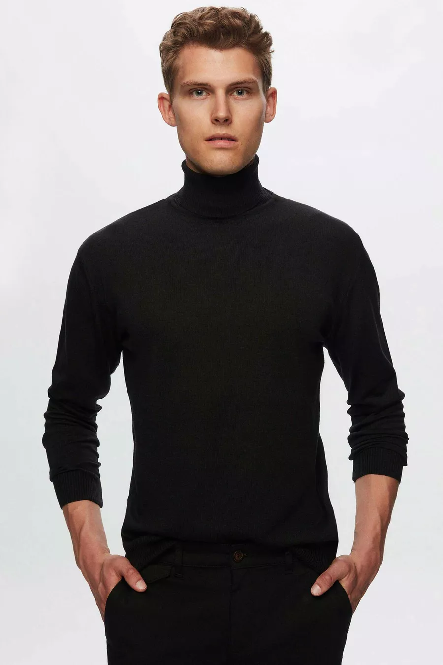 Ds Damat Обычная посадка Черный Свитер с воротником-гольф из хлопковой смеси