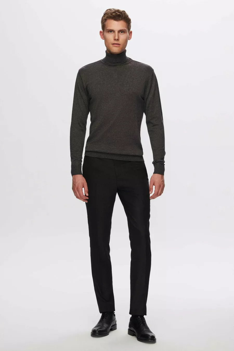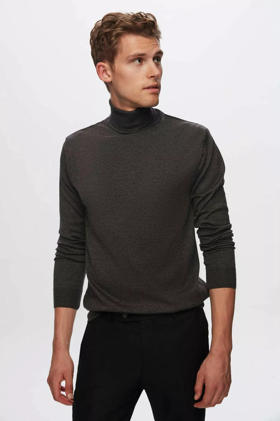 Ds Damat Регулярный крой Антрацитовый хлопковый свитер с воротником-стойкой