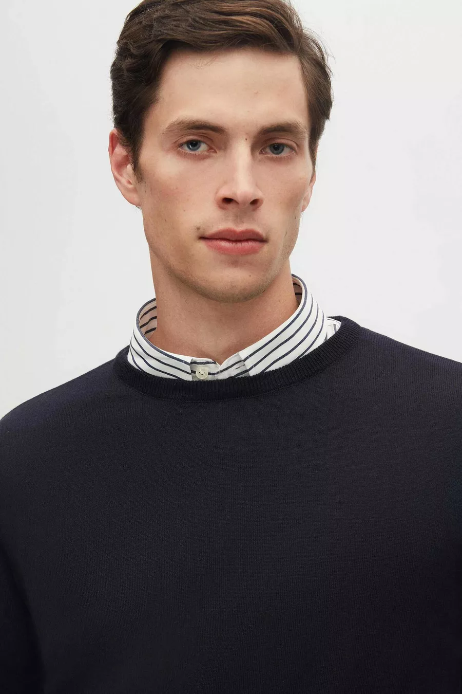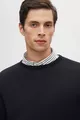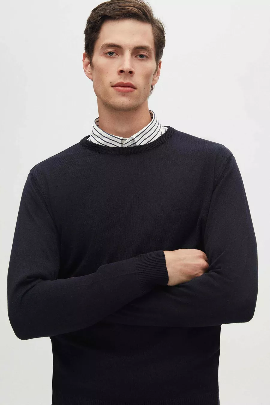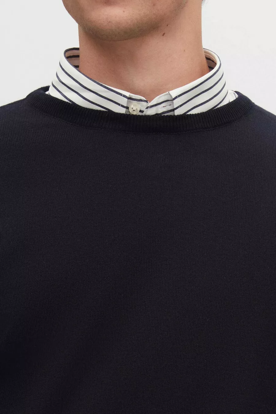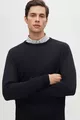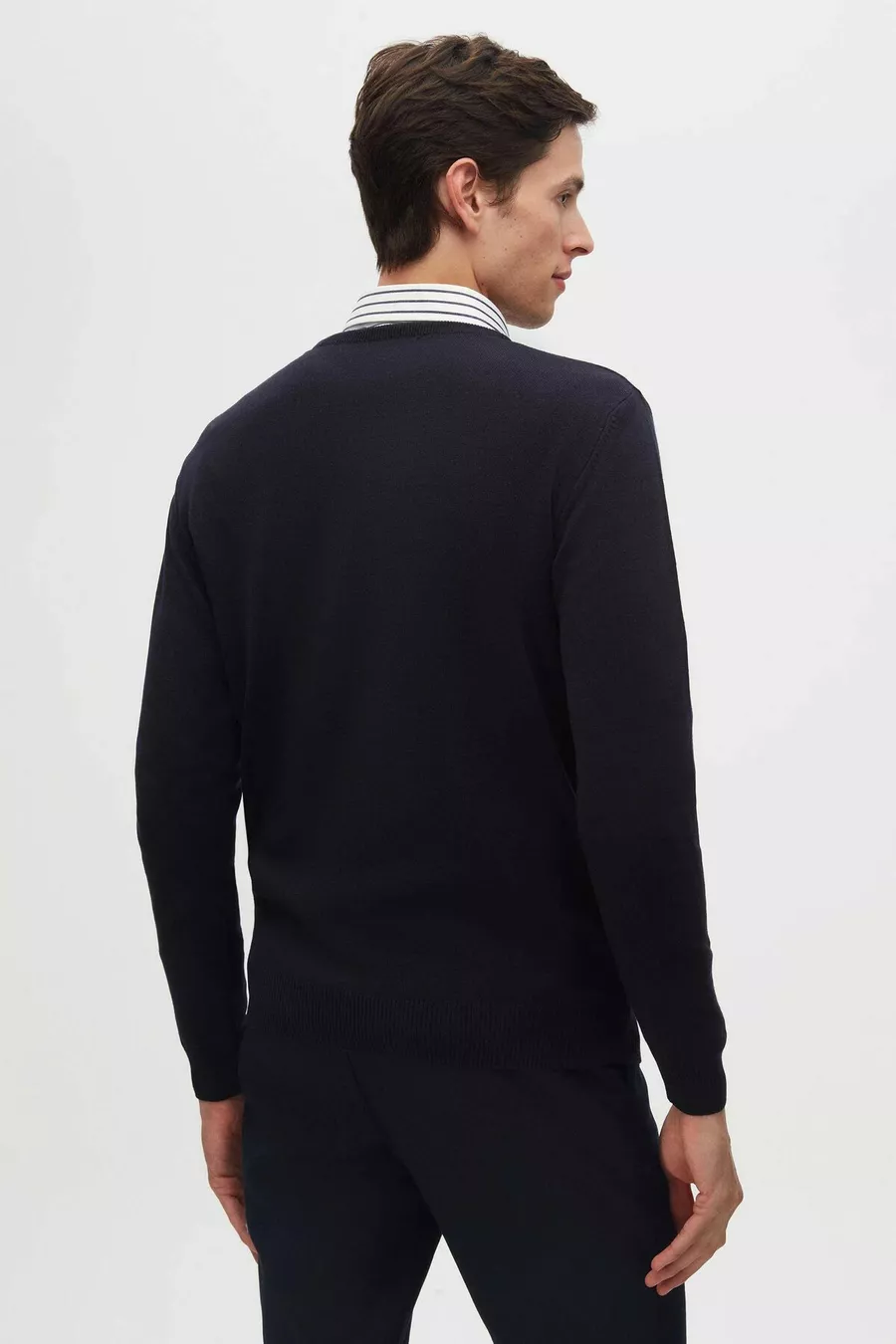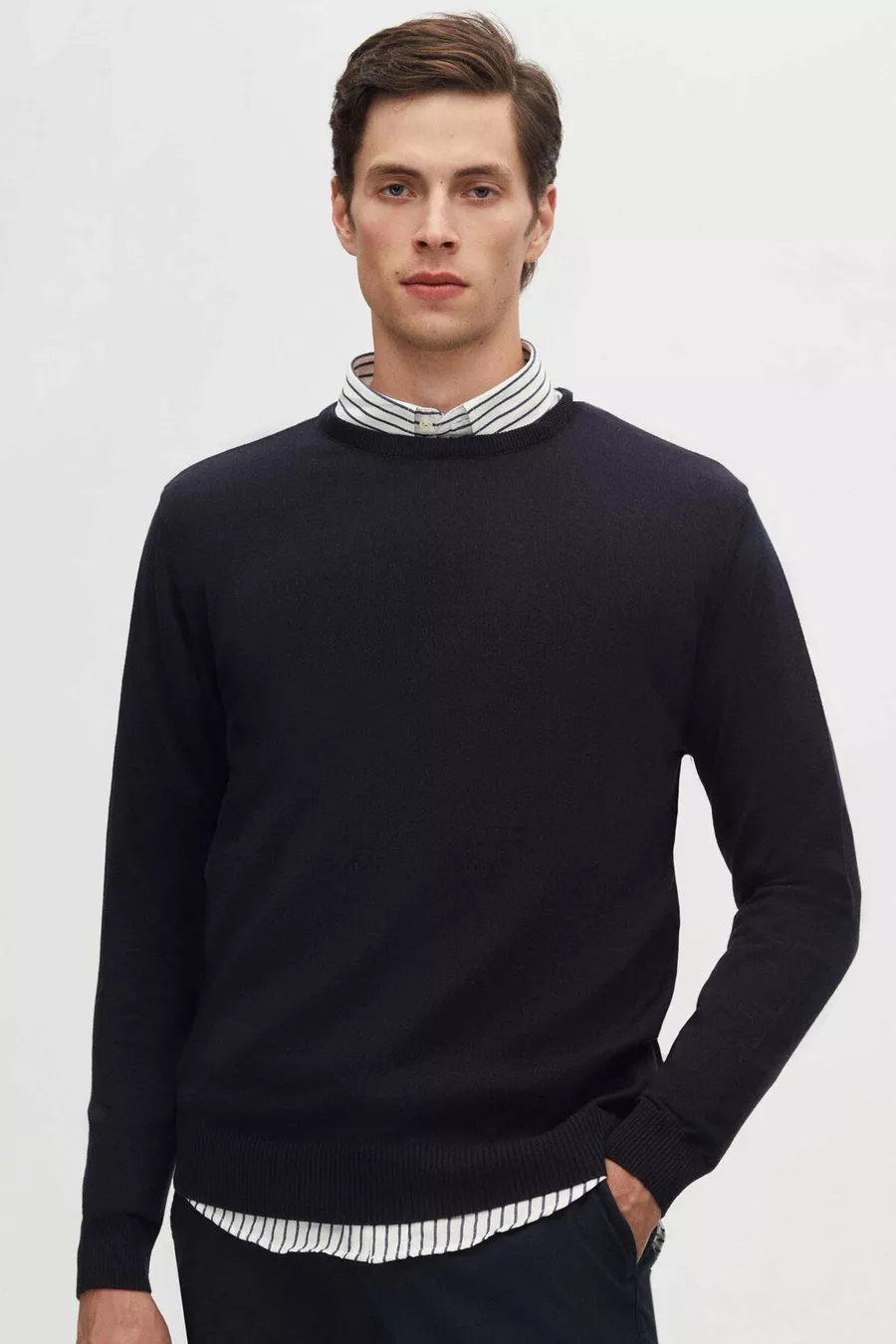 Ds Damat Regular Fit Темно-синий хлопковый трикотажный свитер с круглым вырезом, не скатывающийся