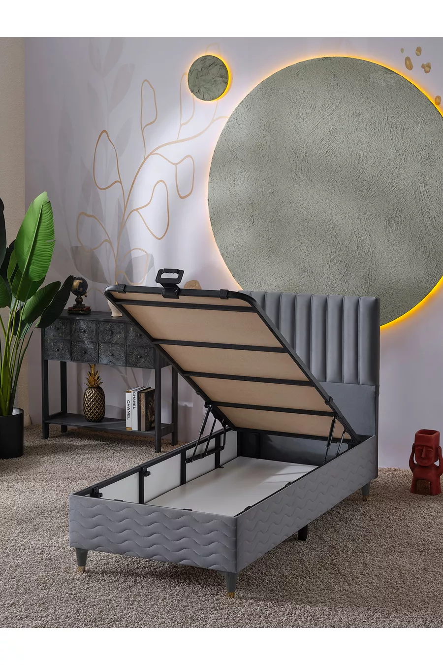 Ezgi Односпальный комплект из 3 предметов (основание + изголовье + матрас) (серый)
