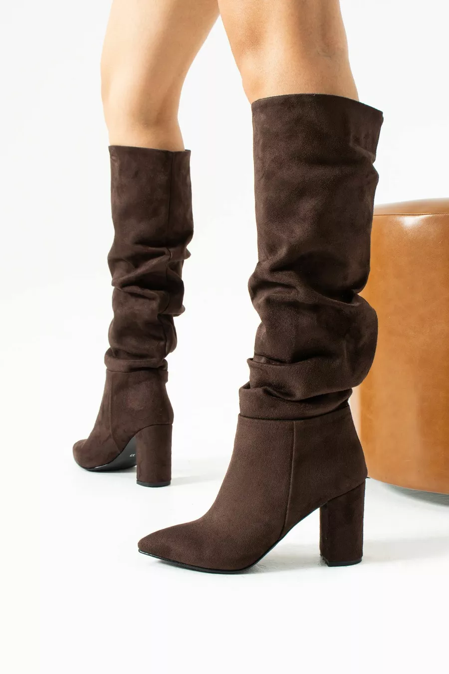 Jagoda Coffee Suede Bellows Женские сапоги на каблуке Deyat