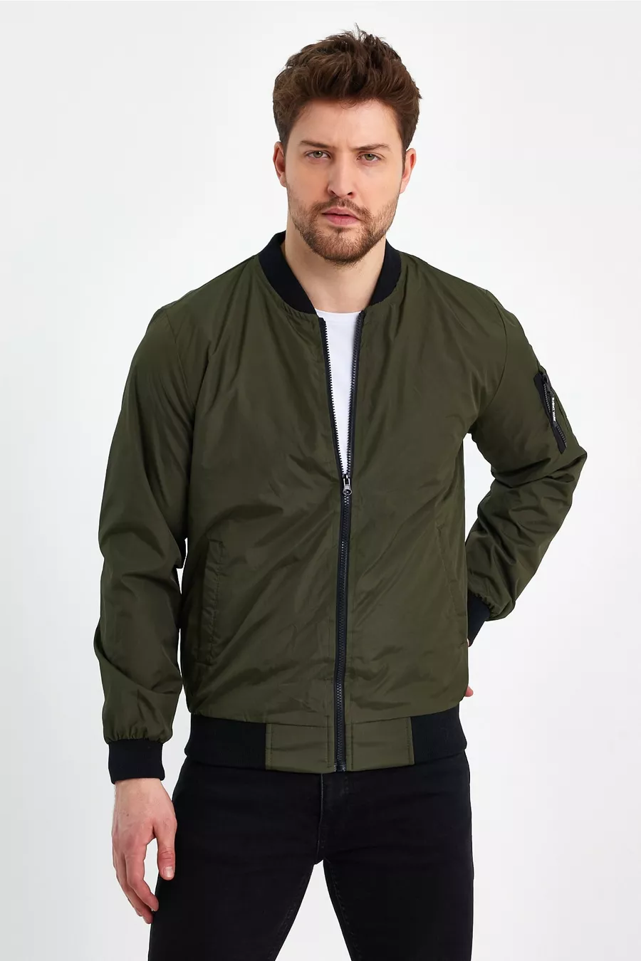 Тип рукава: Длинный рукав Узор: Однотонный Крой: Прямой Тип воротника: Воротник колледжа Материал: Полиэстер Тип ткани: Тканая Цвет: Хаки Застежка: Молния Детали изделия: Молния Карман: Два кармана Длина рукава: Длинная Коллекция: Унисекс Толщина: Средняя Подкладка: С подкладкой Длина: Regular Силуэт: Бомбер Назначение: Повседневное Дополнительные особенности: Ветрозащитный Тип переплетения: Соединенный (Bonded) Детали устойчивого производства: Переработанный материал Наличие пояса: Без пояса Тип изделия: С принтом Инструкция по стирке: Химчистка Наличие коробки: Коробки нет