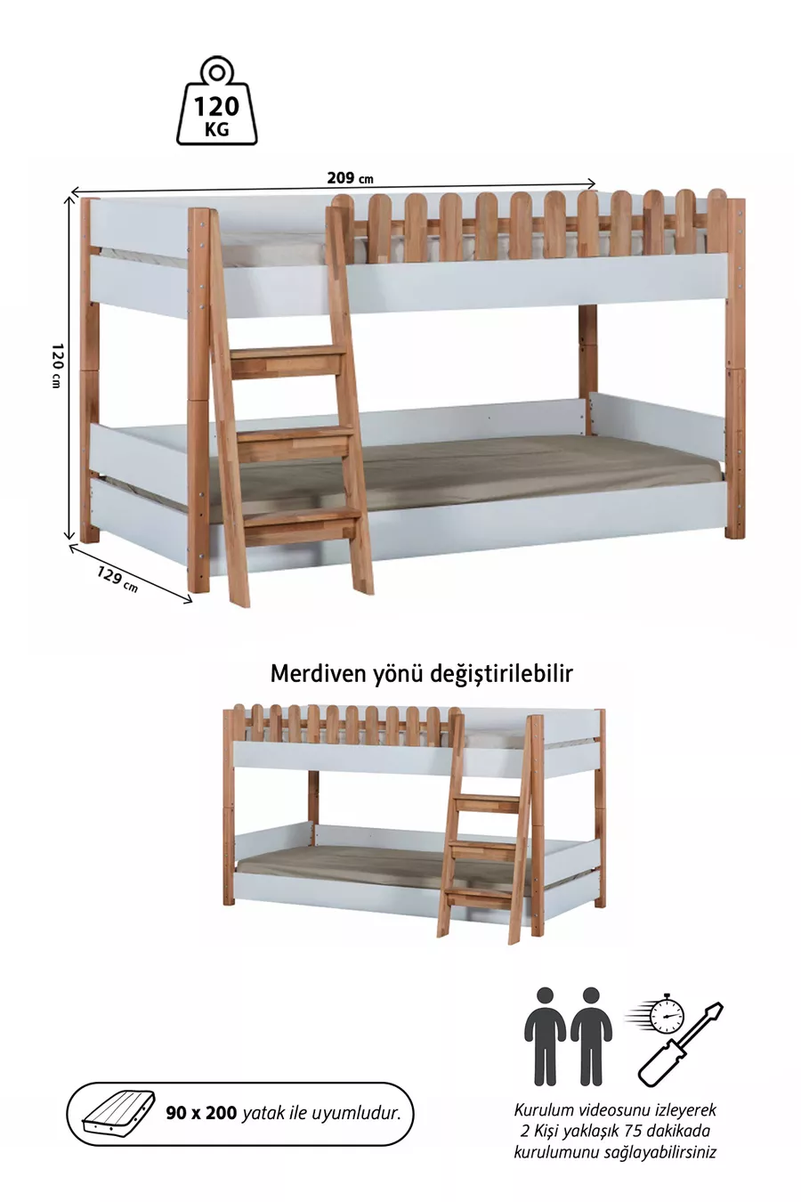 Цвет: Белый Материал: Ламинированная древесина Размер: Двуспальный Габариты: 90 x 200 Гарантия: 2 года Стиль: Классический Тема / Стиль: Современный Кроватка для ребёнка: Нет Происхождение: Турция Особенности: Другие