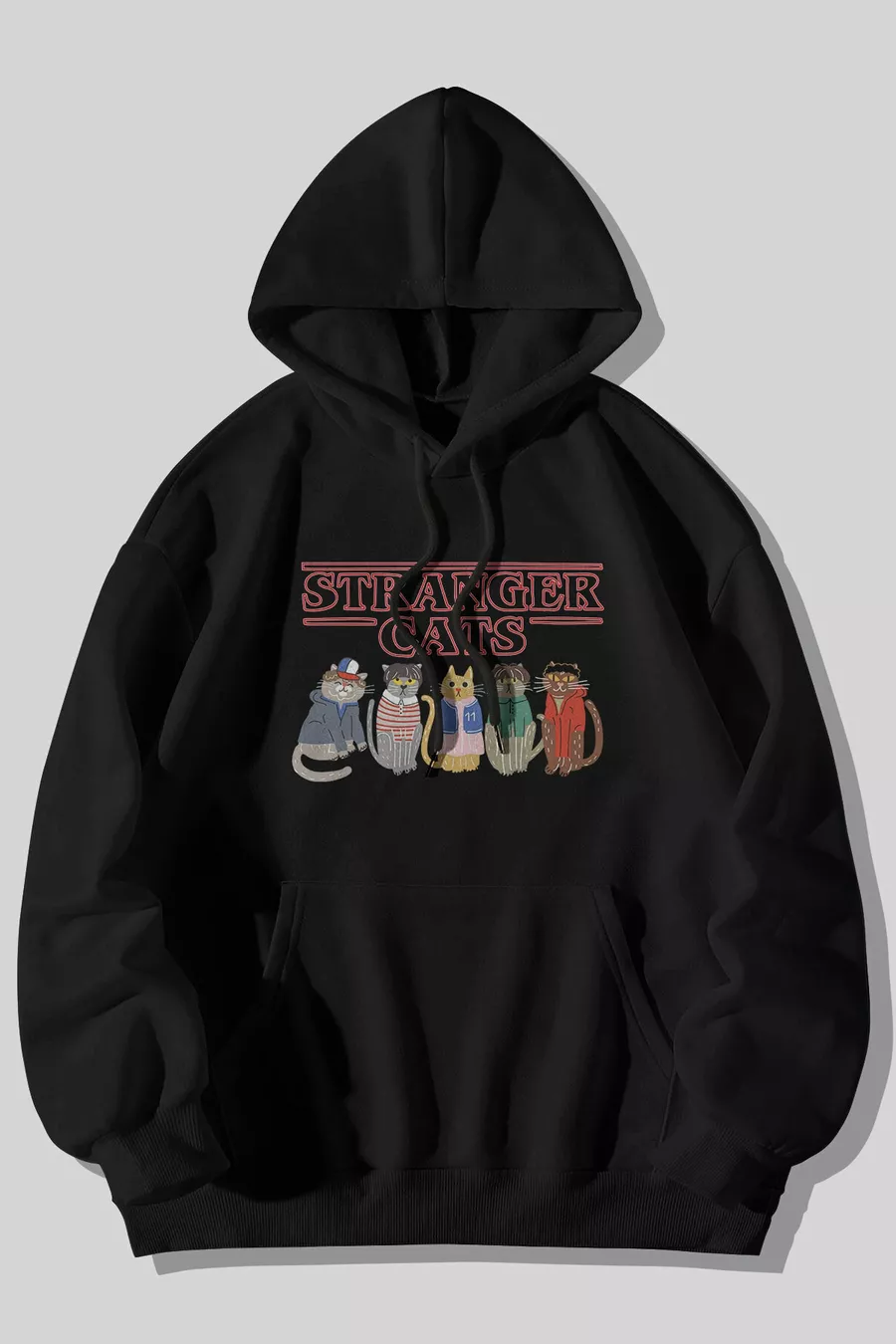 Stranger Things - Stranger Cats с принтом Унисекс черное худи с карманом кенгуру