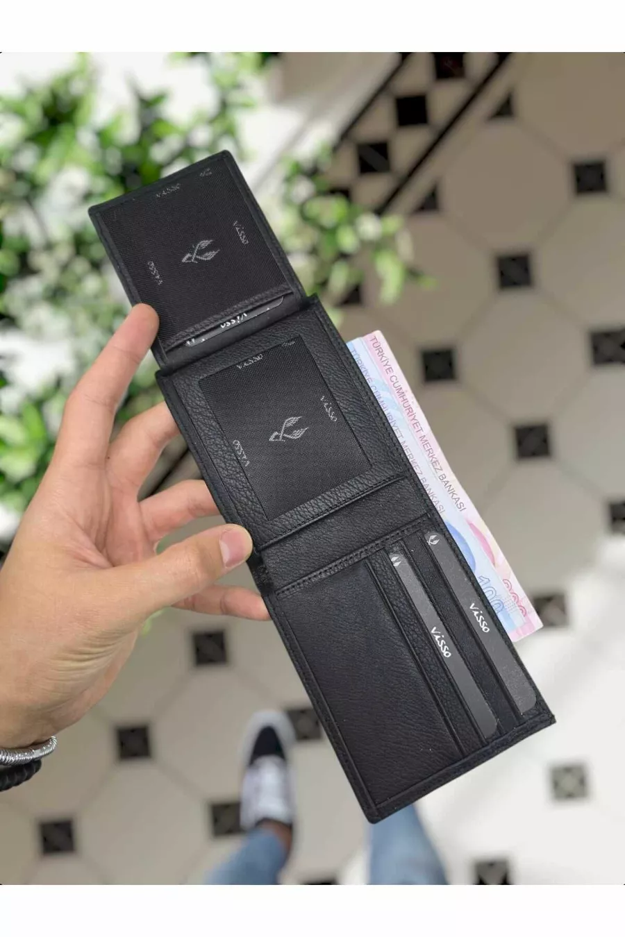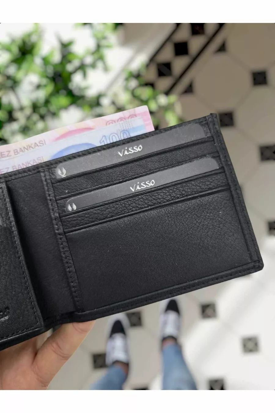 Visso Sandra Натуральная кожа черного цвета Классический мужской кошелек с двойным отделением для идентификации