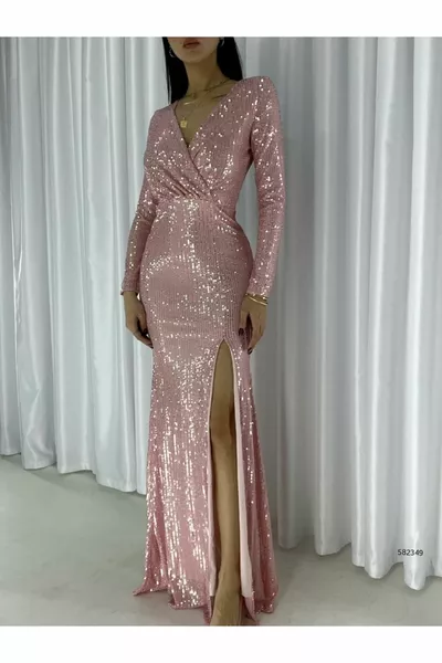 Длинное платье с вышивкой камнем и пайетками с разрезами спереди и на подкладке