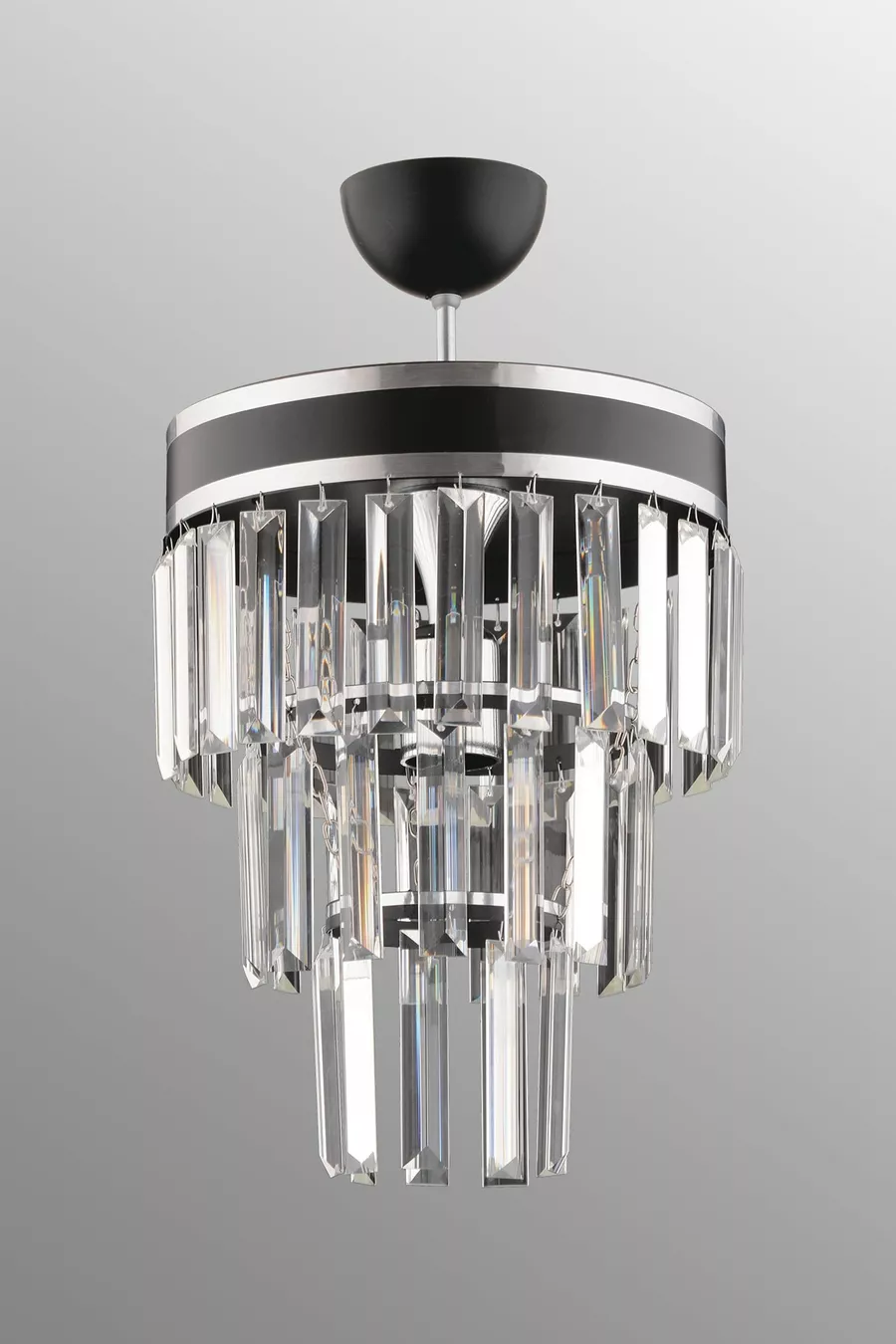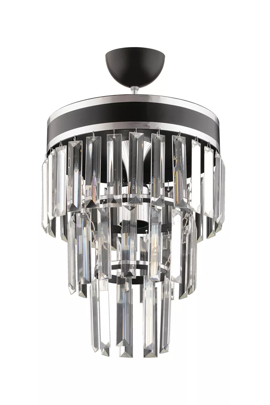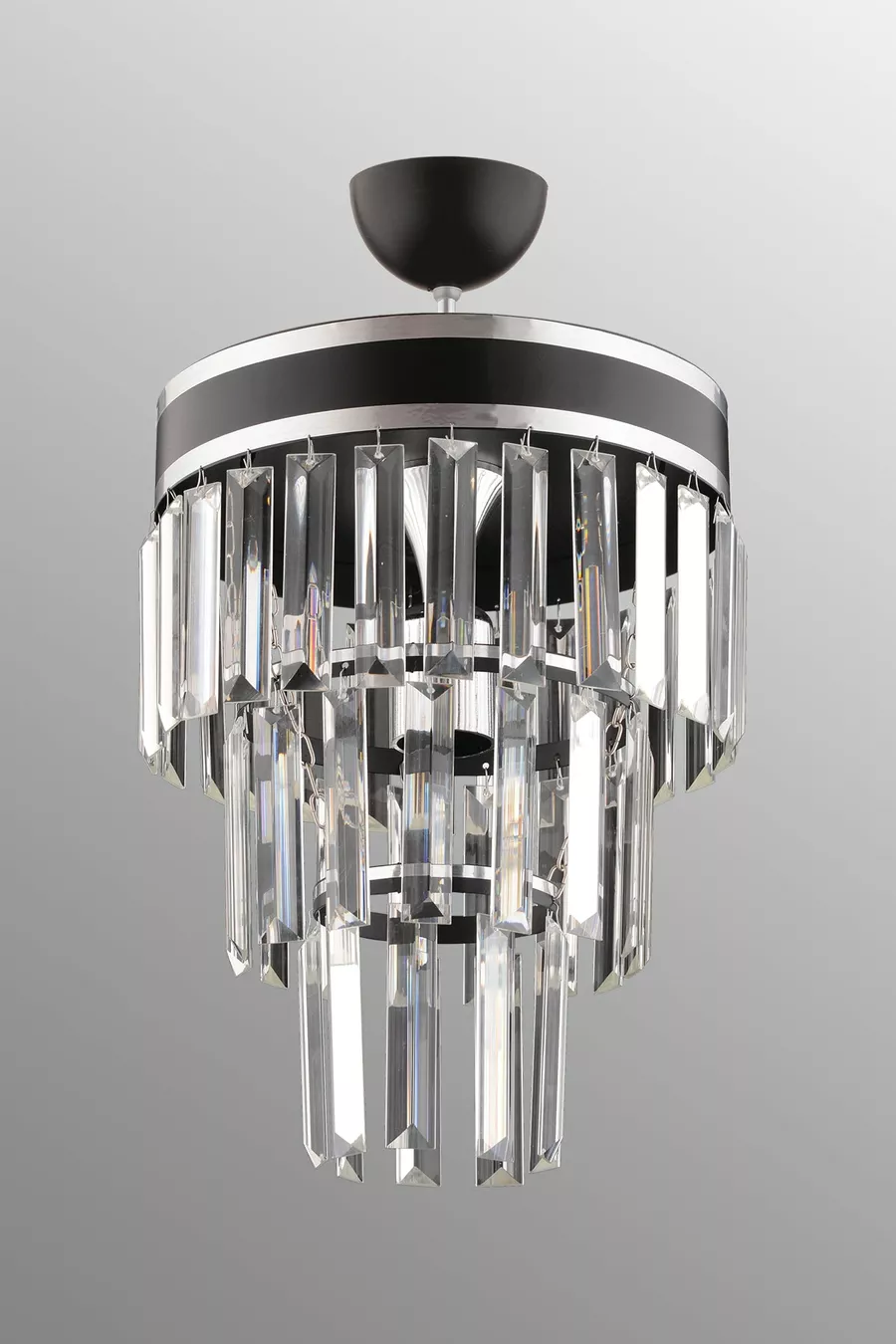 Çağla Tekli Siyah Üç Katlı Kristal Modern Aydınlatma