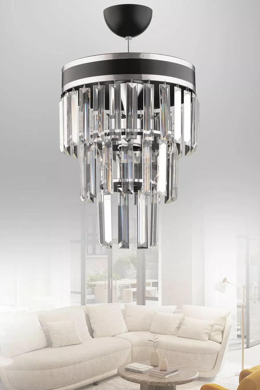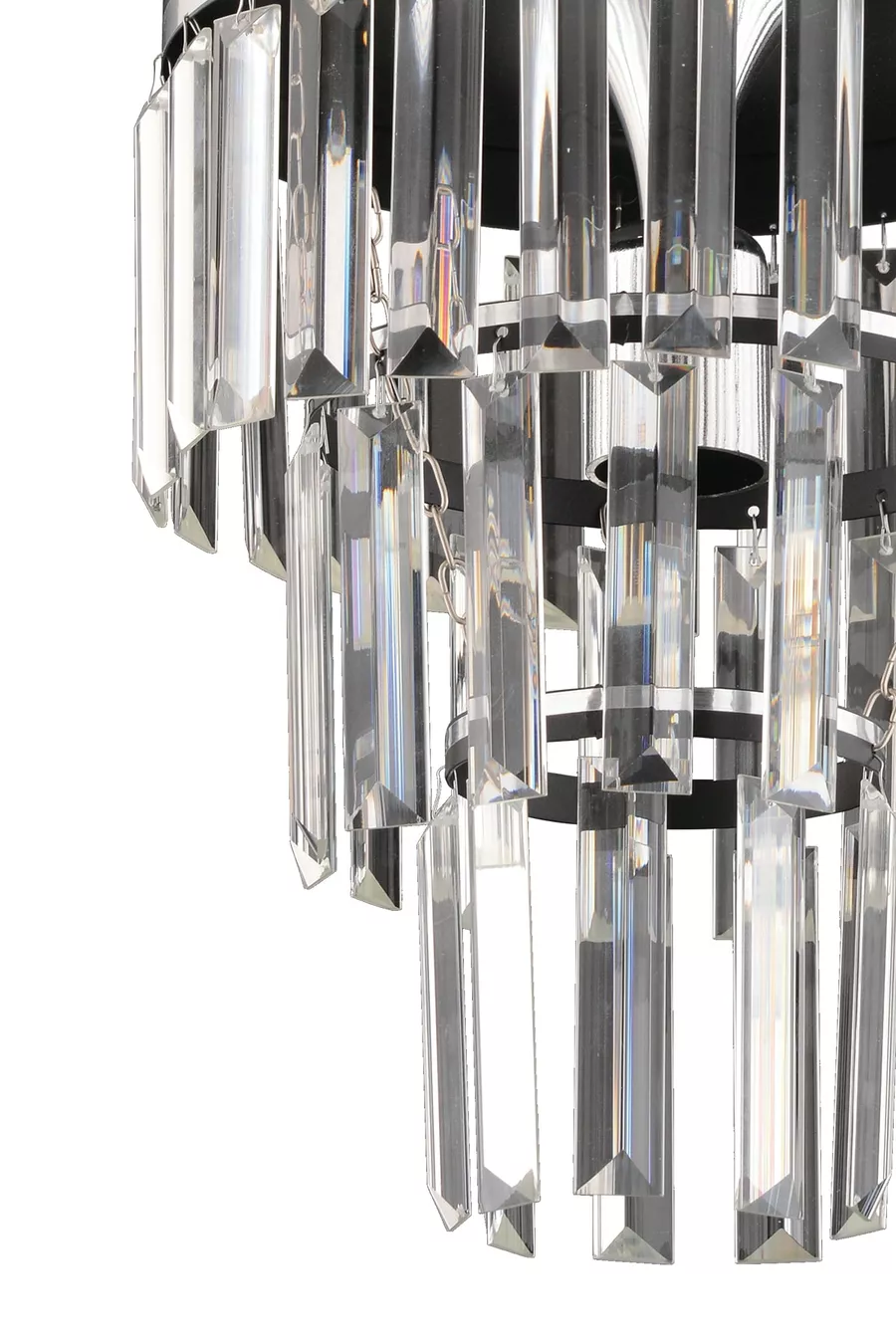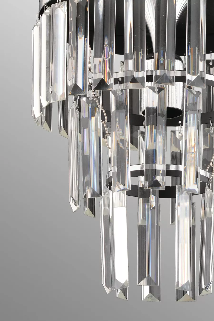 Çağla Tekli Siyah Üç Katlı Kristal Modern Aydınlatma