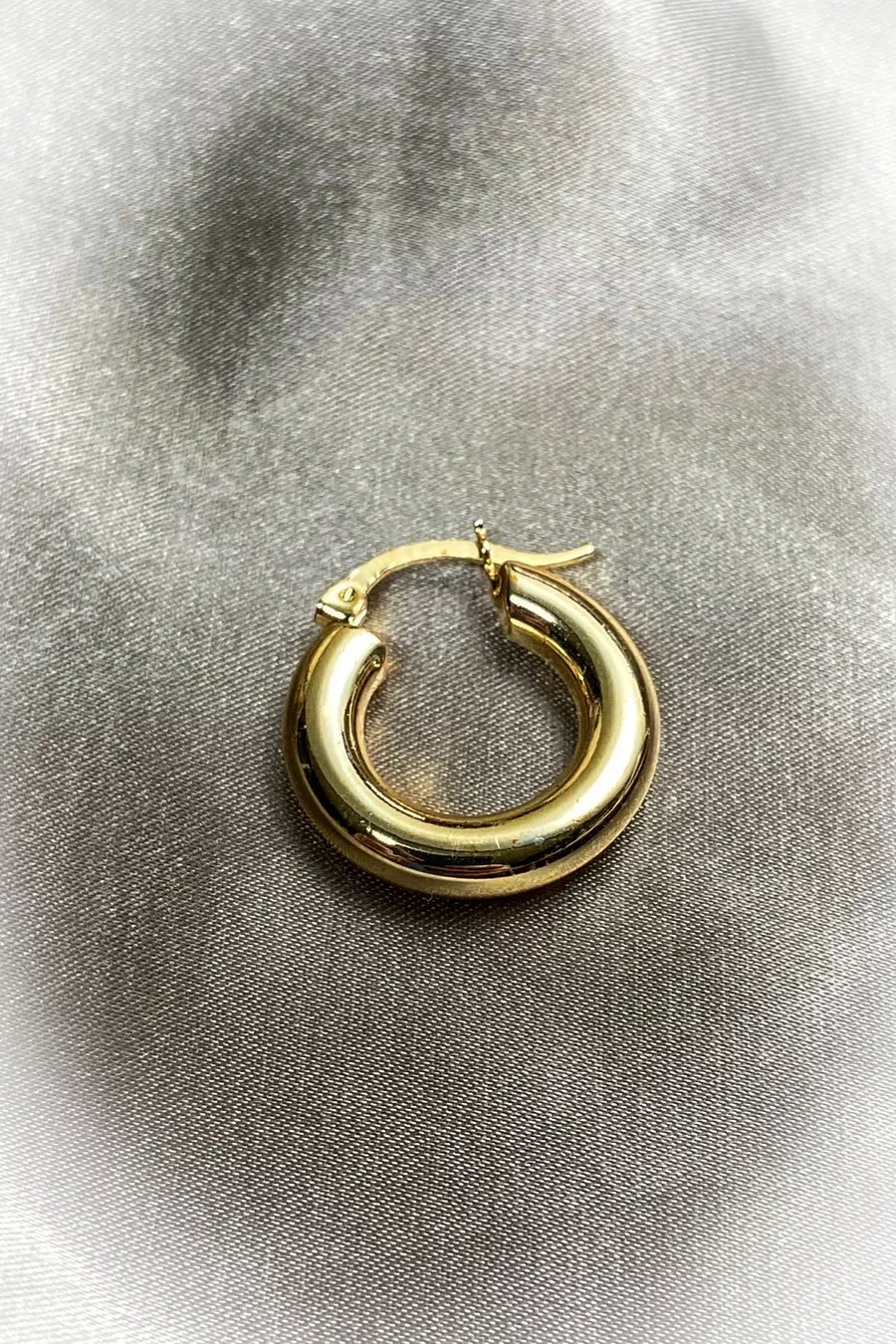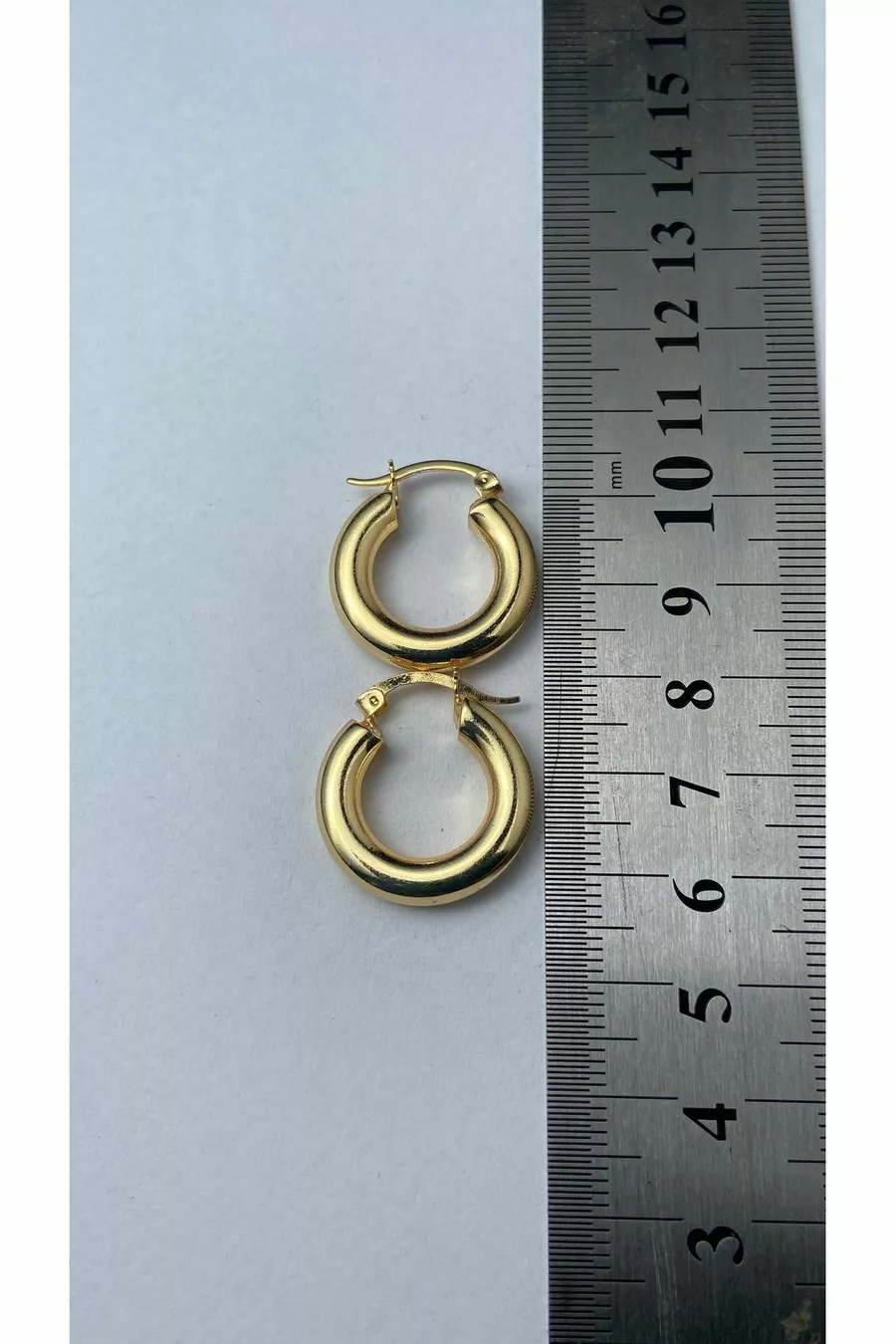 Çelik Kararmaz - 2 Adet Premium Bombeli Halka Küpe Oval Gold Altın Kalın Küpe Kadın zincironline