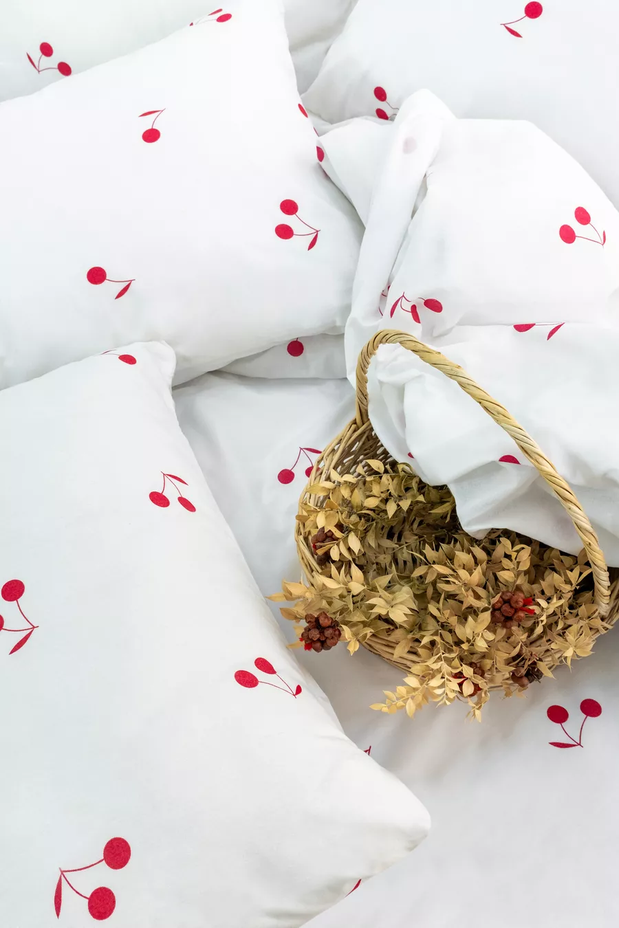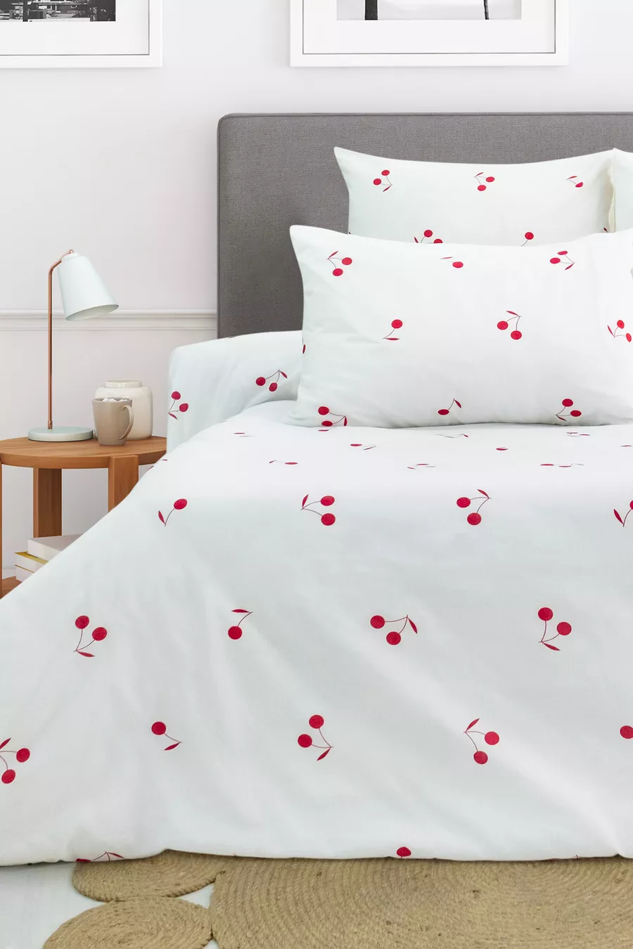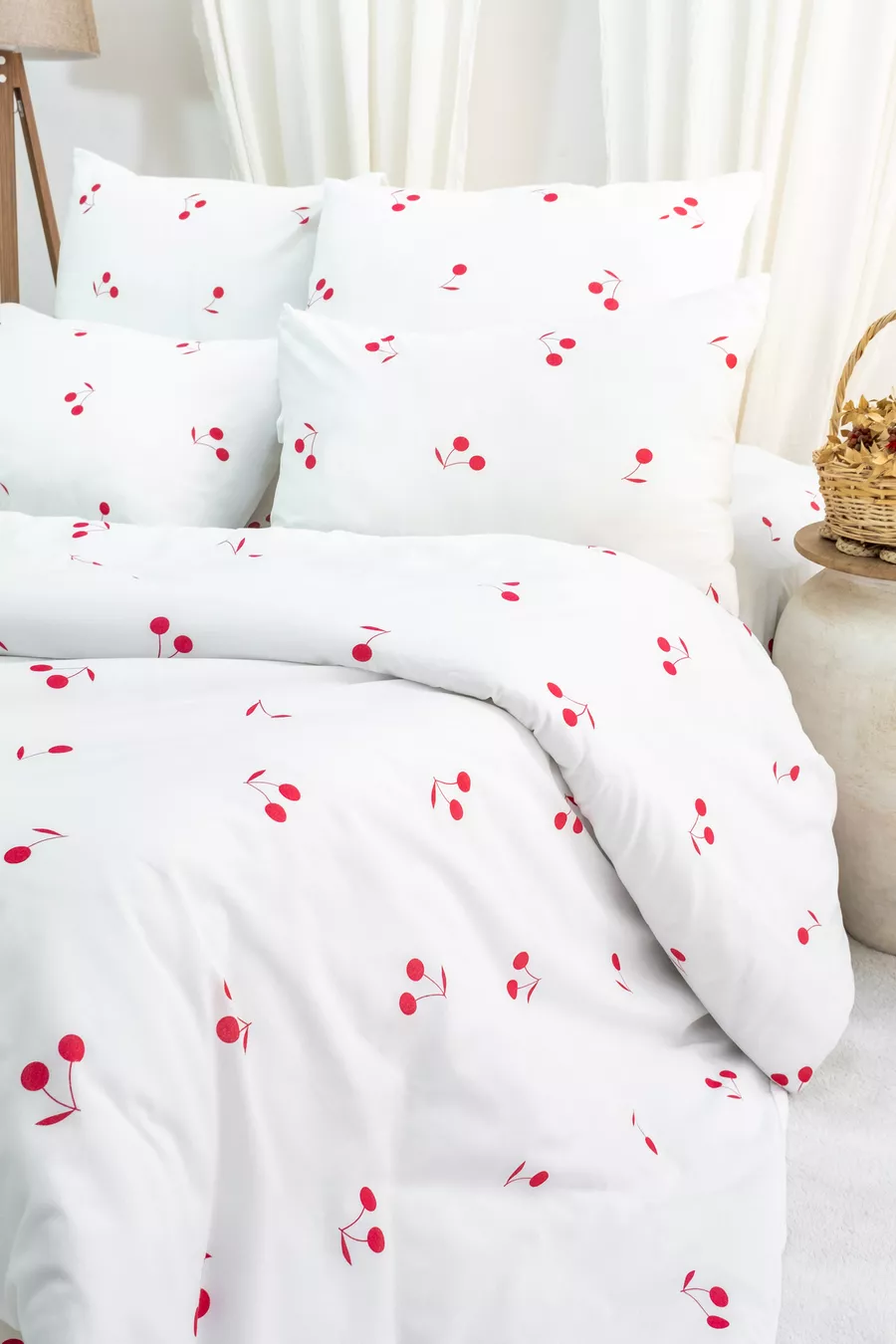 Çift Kişilik Kiraz Desen Pamuklu Nevresim Seti (çarşafsız)