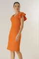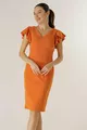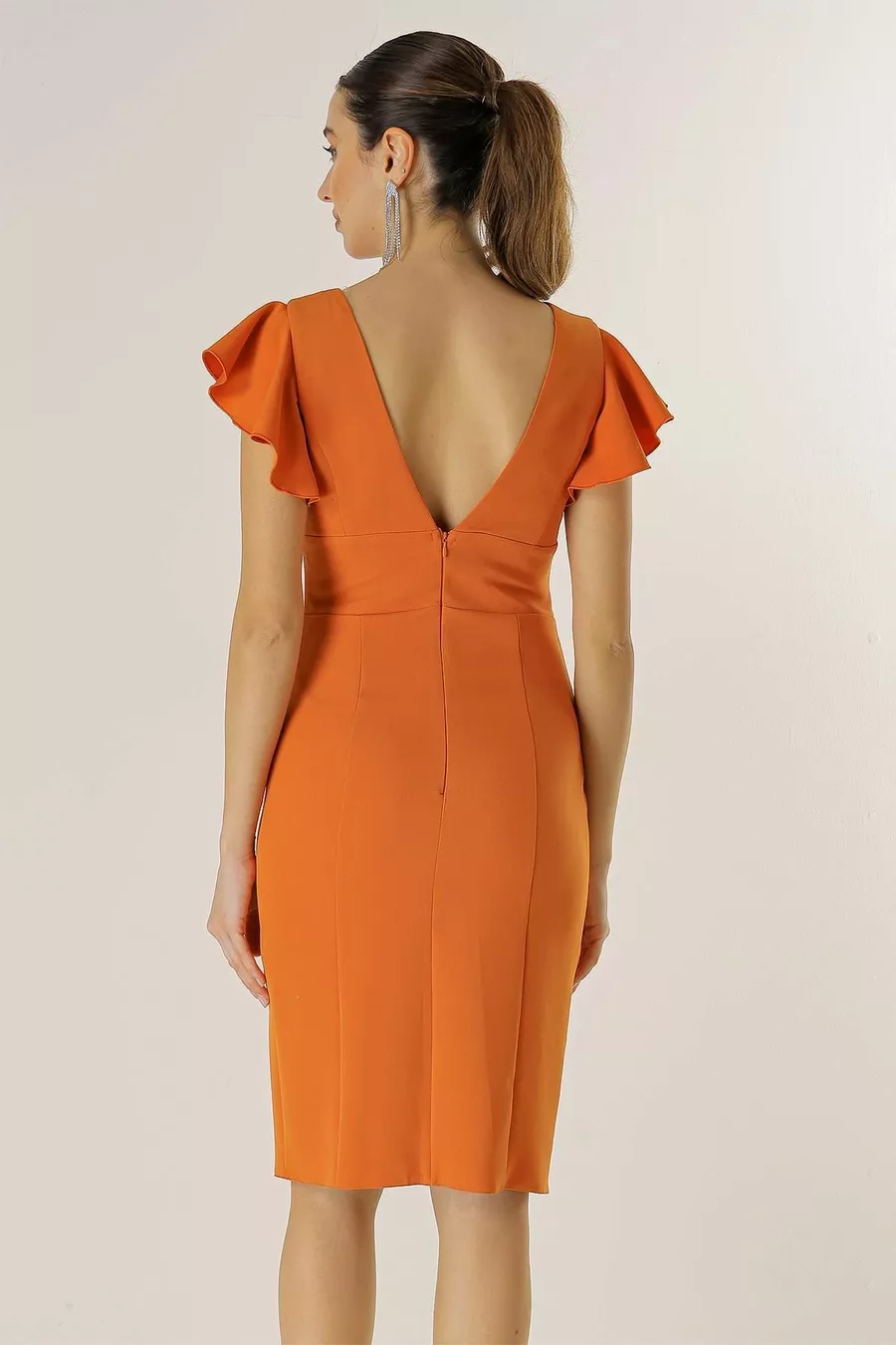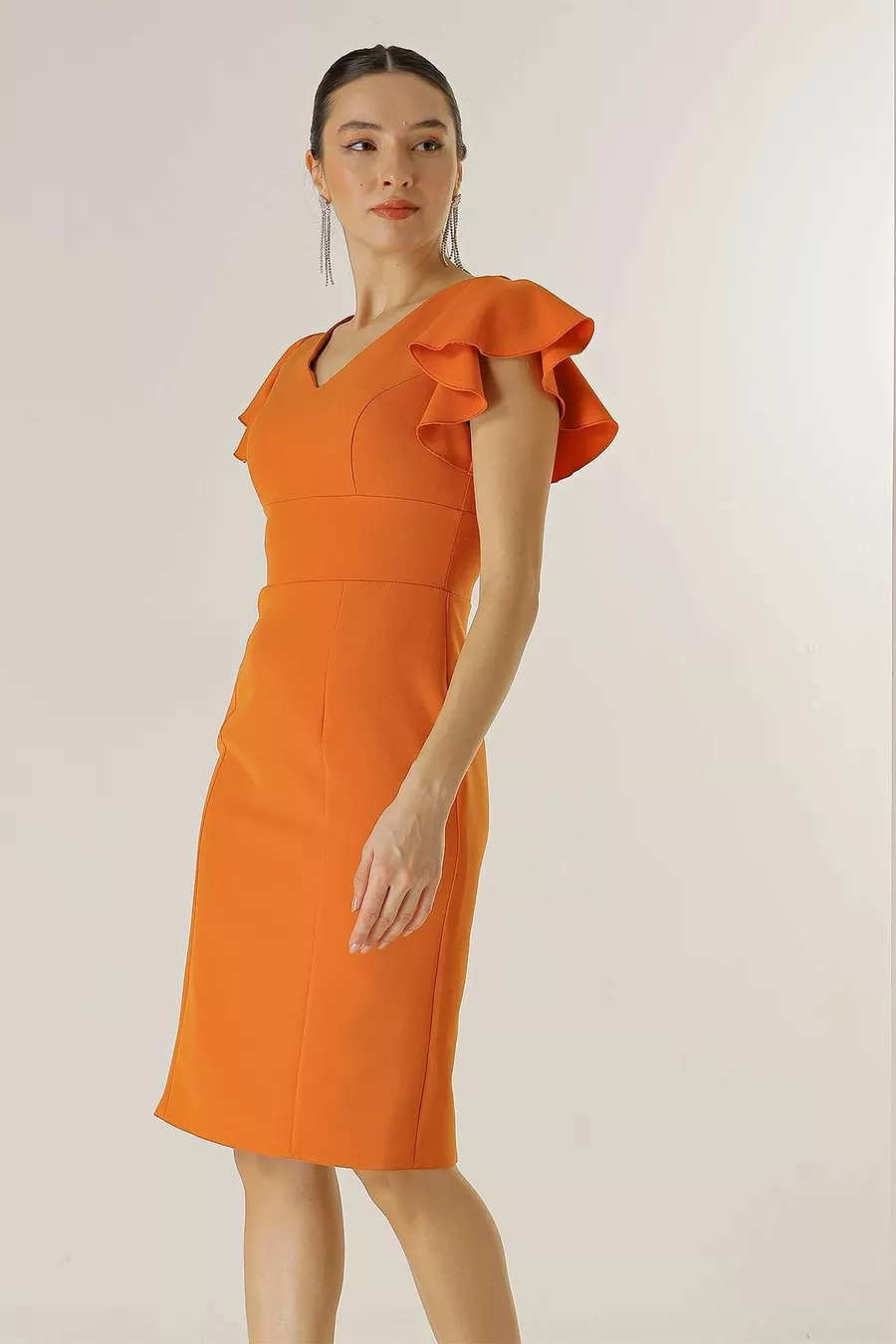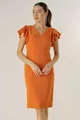 Ön Arka V Yaka Kolları Volanlı Astarlı Krep Elbise