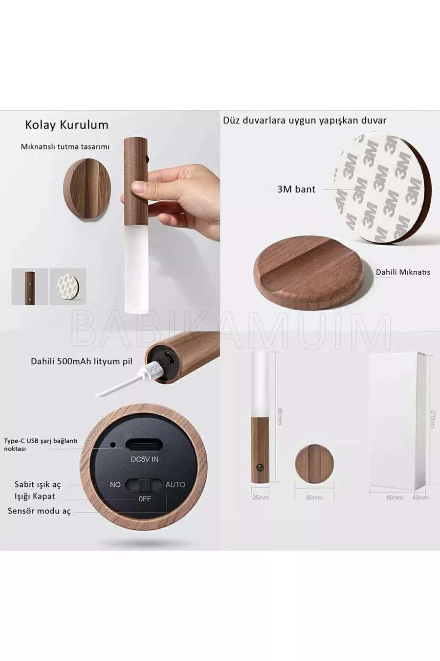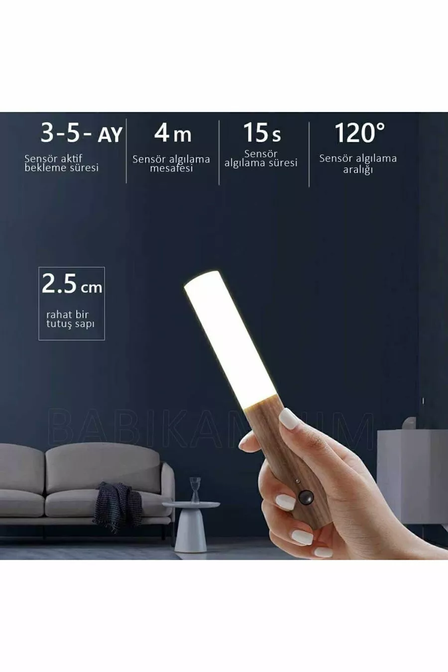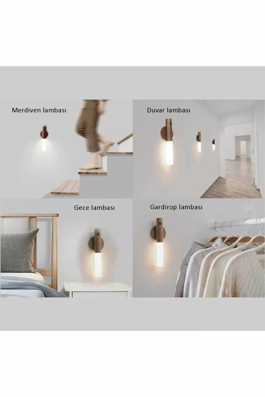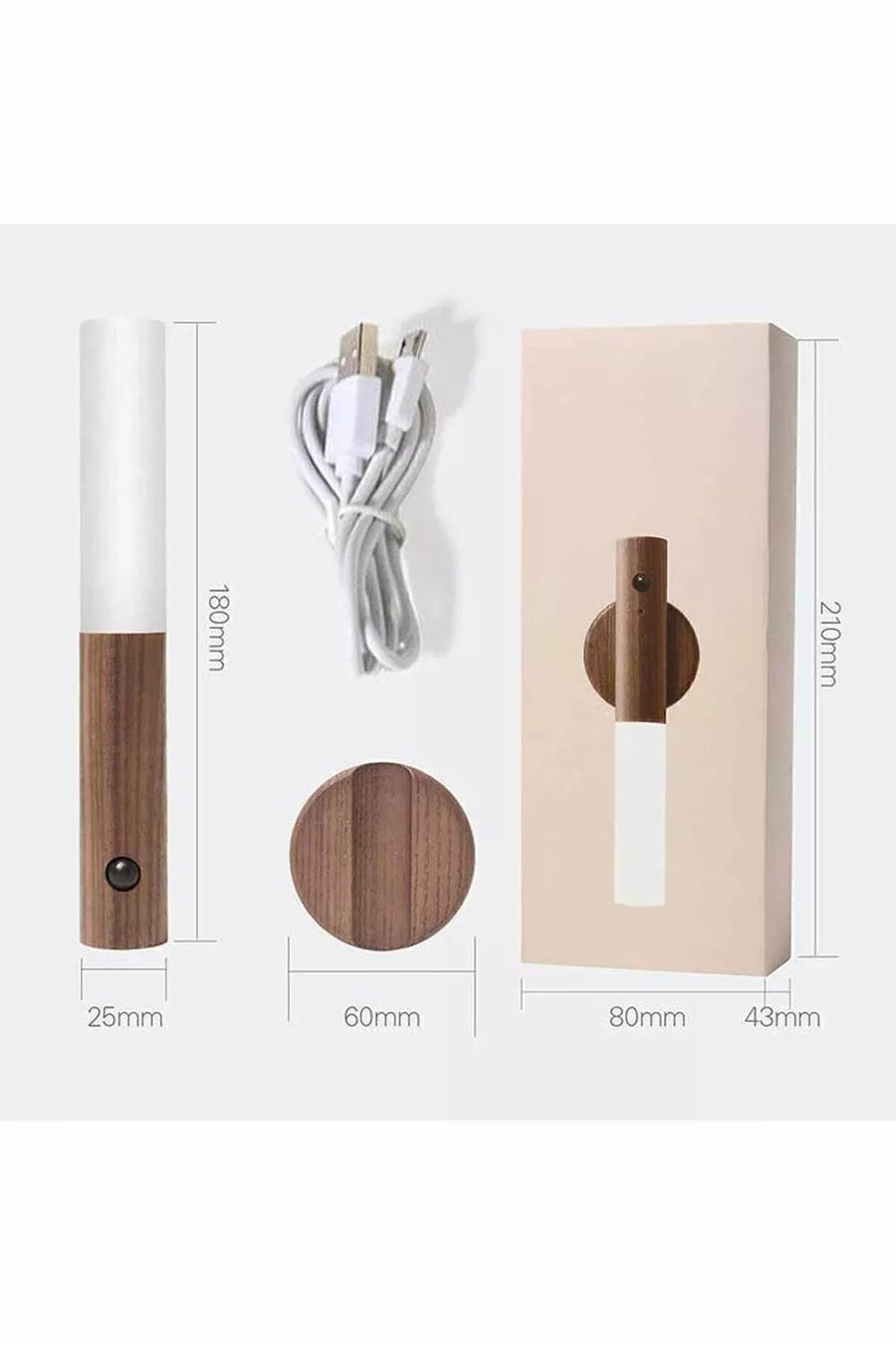 Şarjlı Kablosuz Sensörlü Led Aplik Şarjlı Ahşap Görünümlü Harekete Duyarlı Dekoratif Duvar Lambası