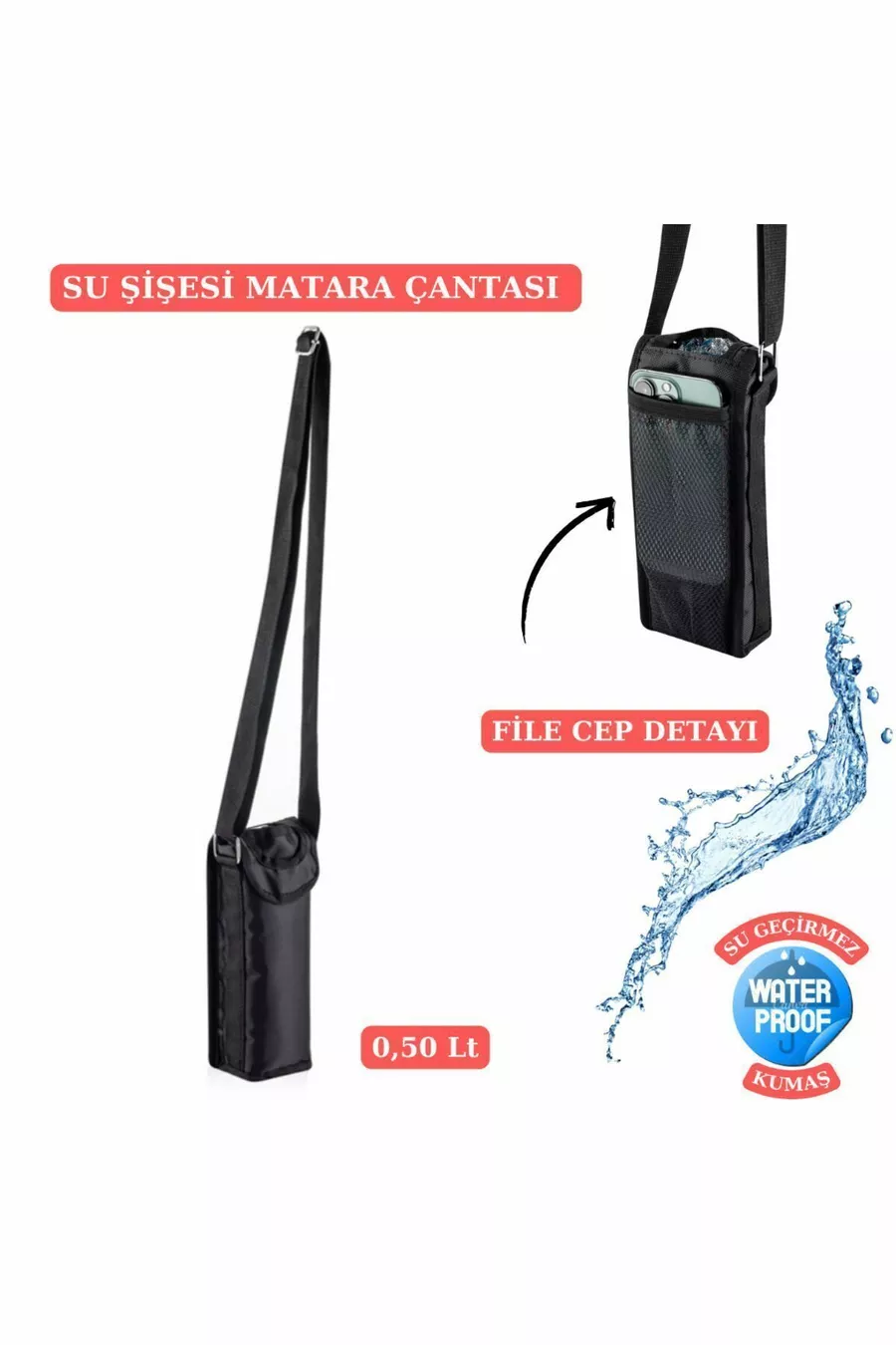 0,5 Litre Su Şişesi Taşıma Çantası Matara Kılıfı Termal Çanta-siyah Siyah