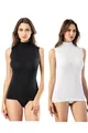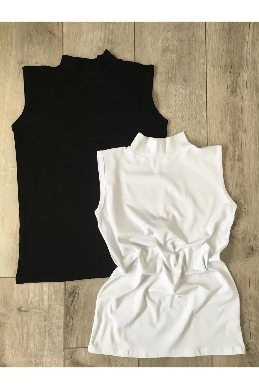 (1 ADET SİYAH VE 1 ADET BEYAZ RENK) Balıkçı Yaka Boğazlı Sıfır Kol Pamuklu Body