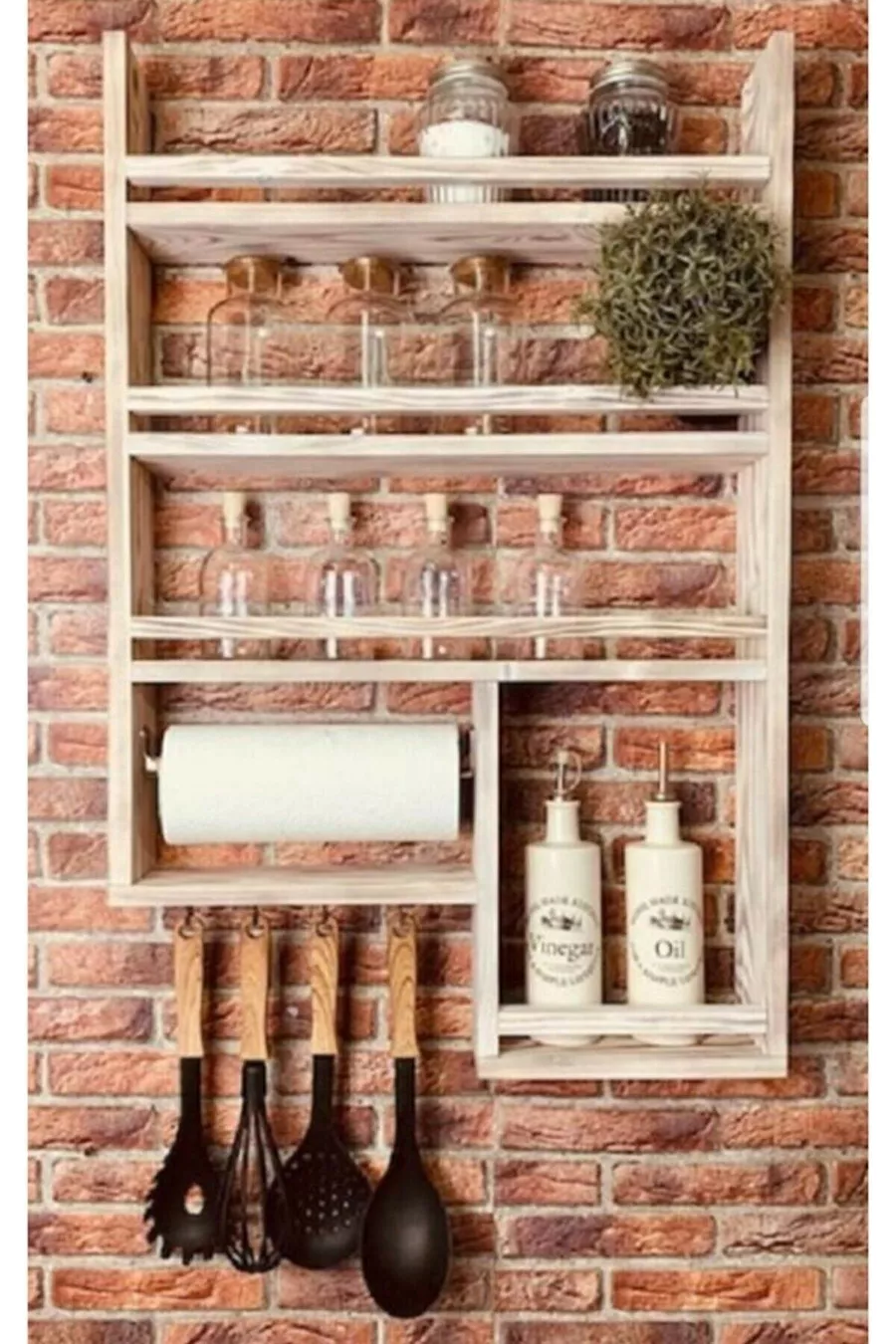 1 Yıl Doğal Çam Agacı Ham Mutfak Tereği Raf Bej Ahşap Klasik TR Klasik