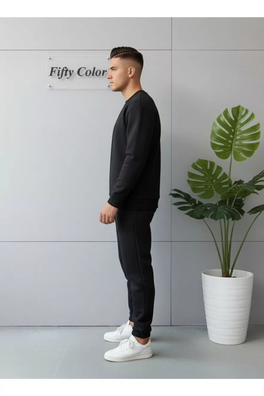2 Li Siyah Sweatshirt Ve Siyah Eşofman Kombin Düz