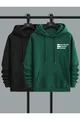 2'Li Still Freedom Kalın Kışlık Sweatshirt - Baskılı Oversize Kapüşonlu