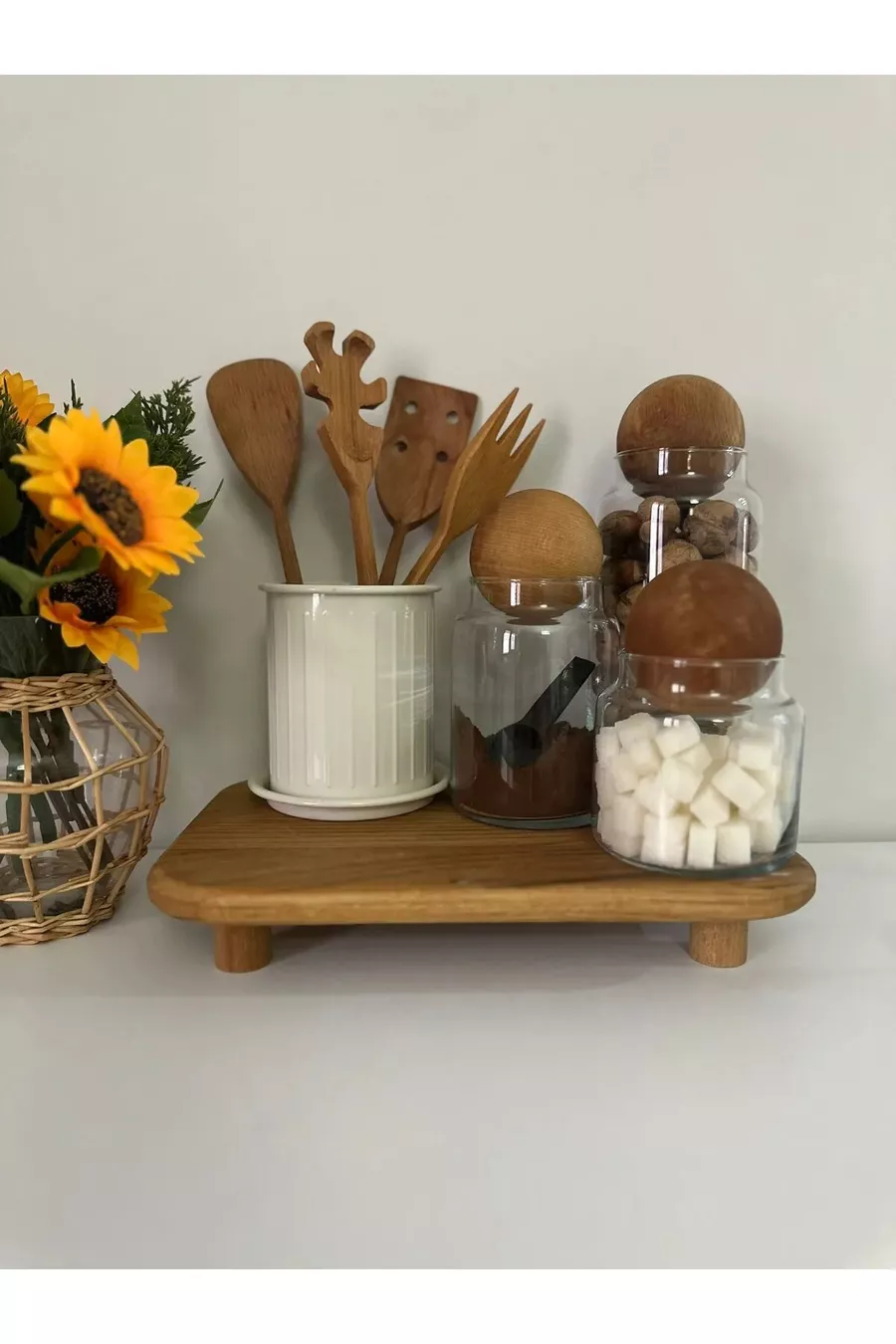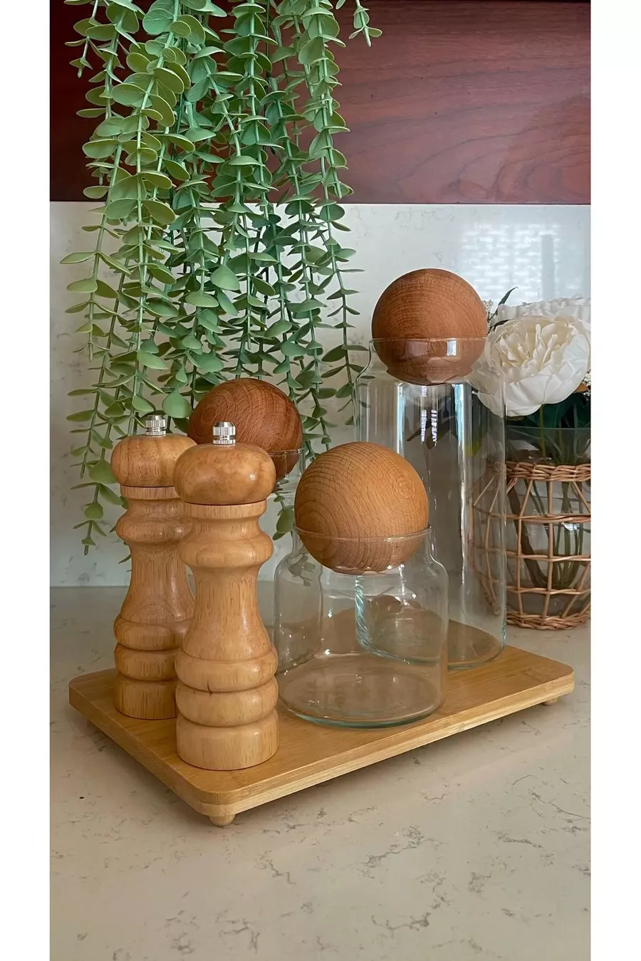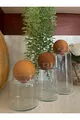 3'lü Ahşap Top Mantar Kapaklı Cam Kavanoz Seti Şekerlık Çerezlik Ve Baharatlık Ve Saklama Kabı