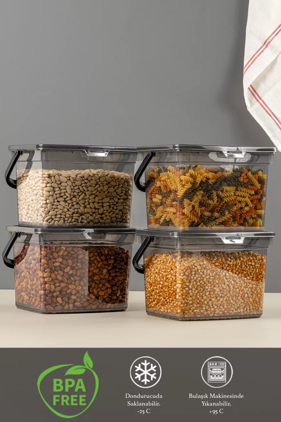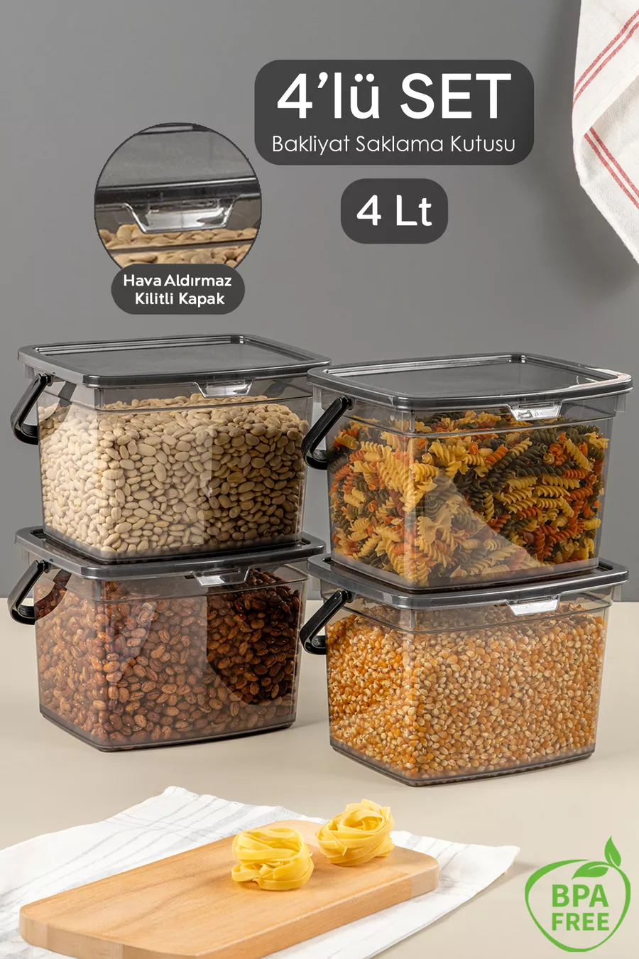 4'lü Set Çok Amaçlı Un Bakliyat Saklama Kabı - Erzak Mutfak Saklama Kutusu Gri 4 Lt