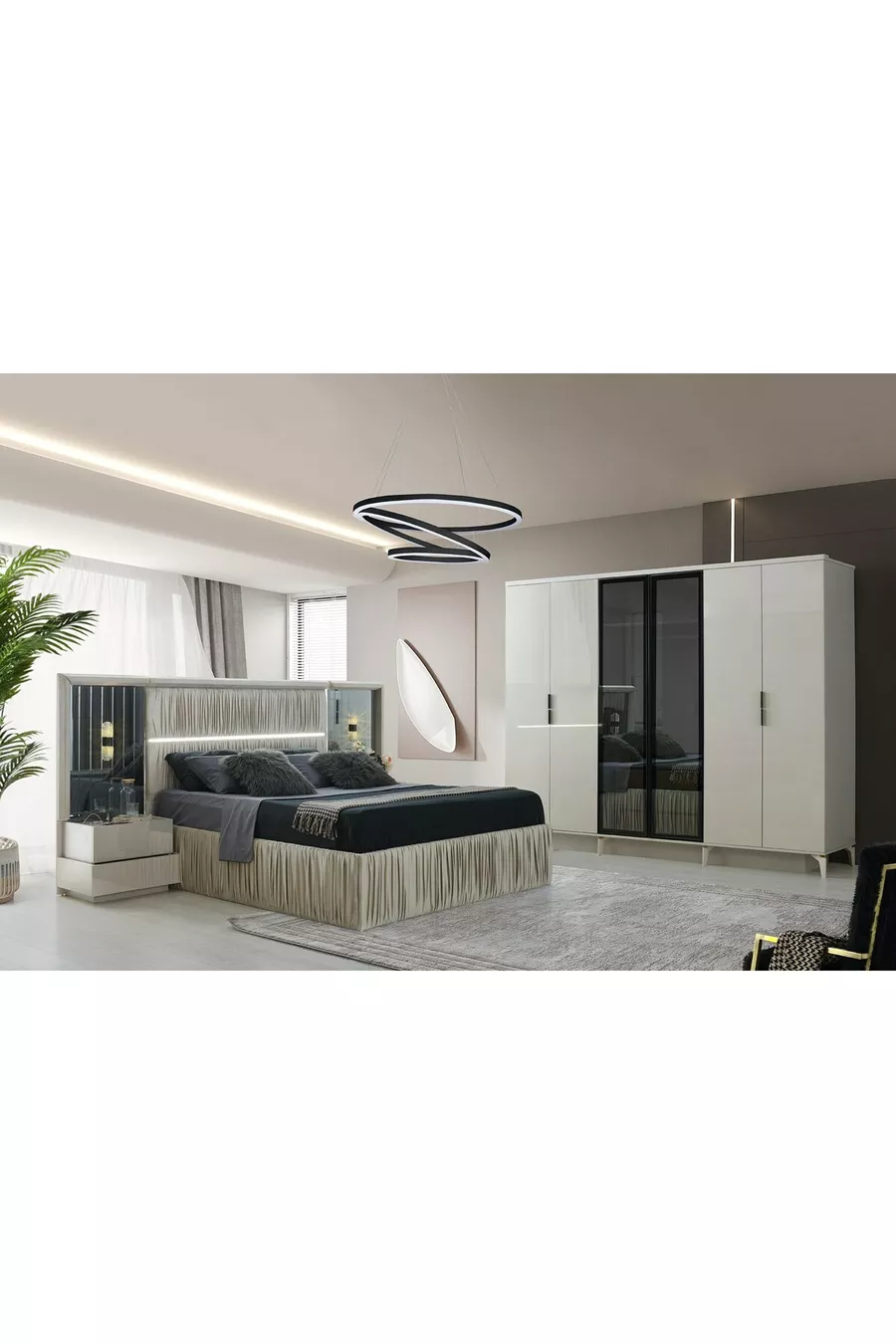 Set İçeriği:Bazalı Karyola + 2 Komodin + Şifonyer + Gardırop