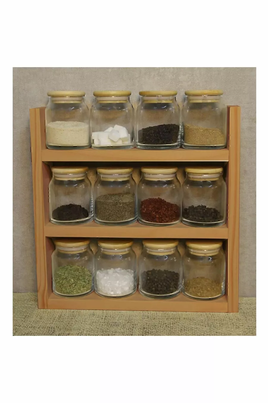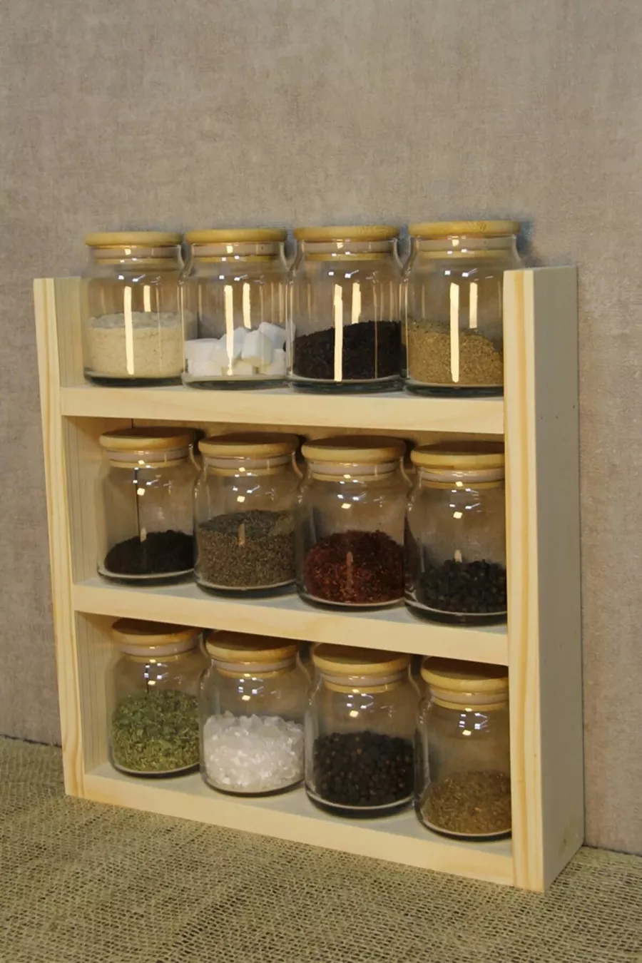Ahşap Baharatlık Standı Tezgah Üstü Düzenleyici Ahşap Raf Baharatlık