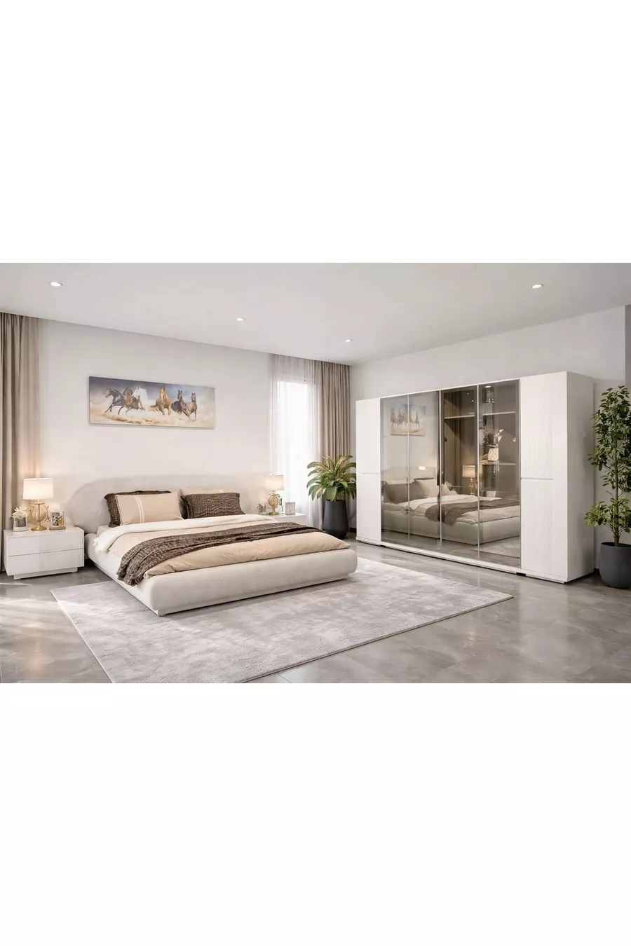 Renk:BejGaranti Süresi:2 YılKaryola/Baza Ölçüsü:160 x 200Karyola Fonksiyonu:BazalıDolap Fonksiyonu:CamlıGardırop Gövde Materyali:SuntalamKapak Sayısı:6Set İçeriği:Karyola + 2 Komodin + Şifonyer + Gardırop + AynaStil:ModernTema / Stil:ModernMenşei:TRÖzellik:Kapaklı