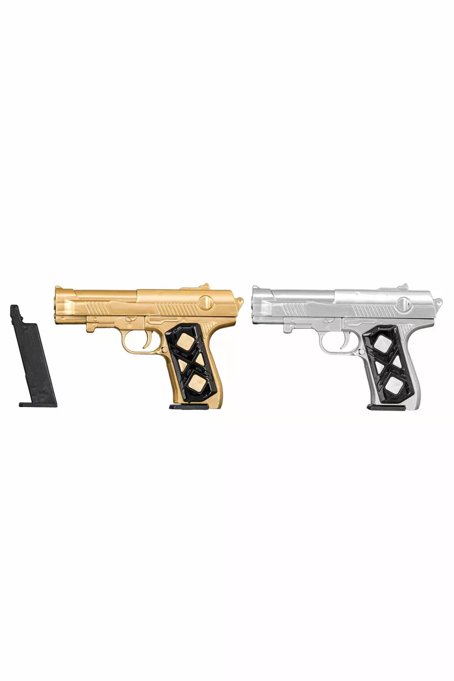 Altın Gümüş Renk Cm. Boncuk Atan Tabanca Ve Paket Adet Gold Boncuklu