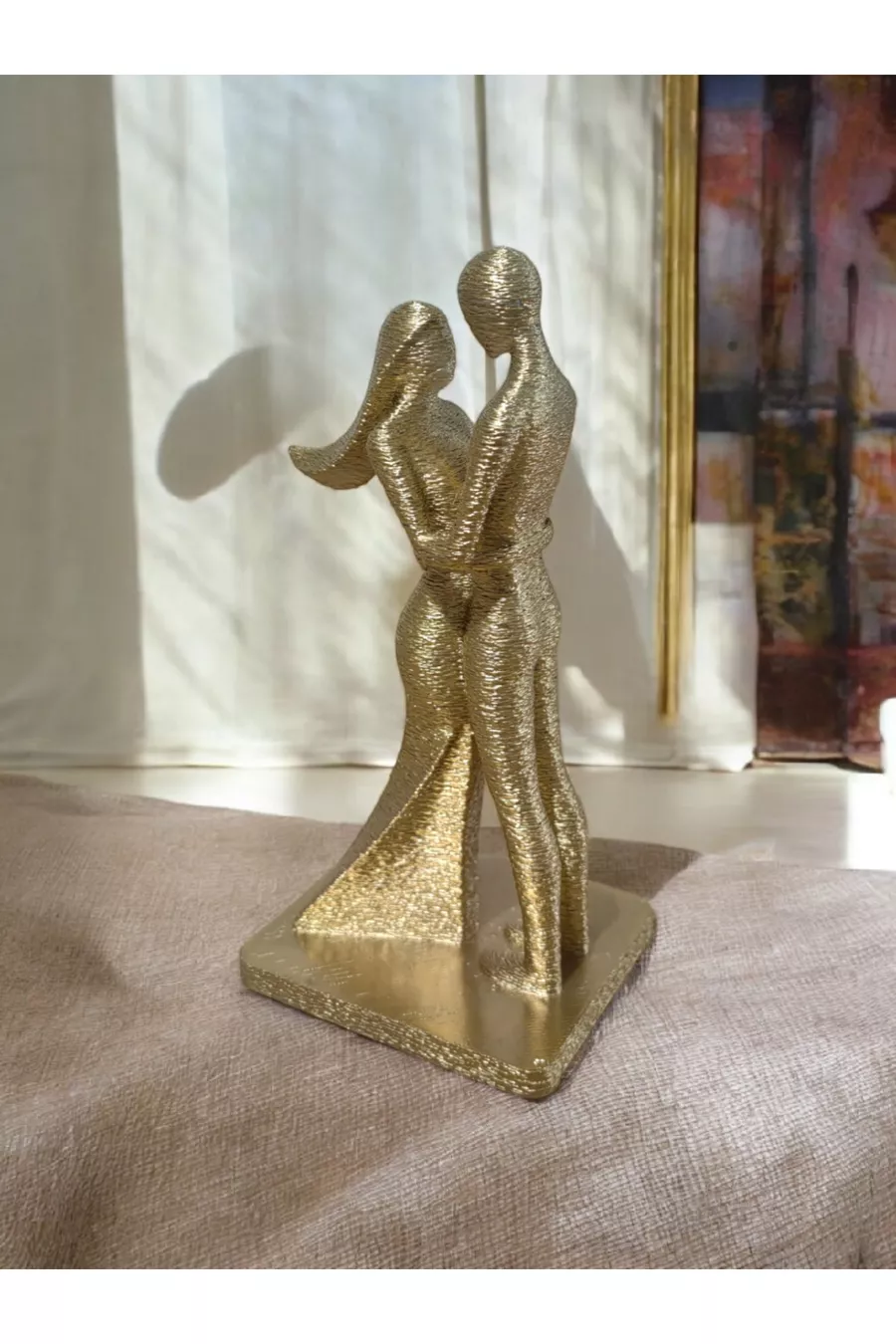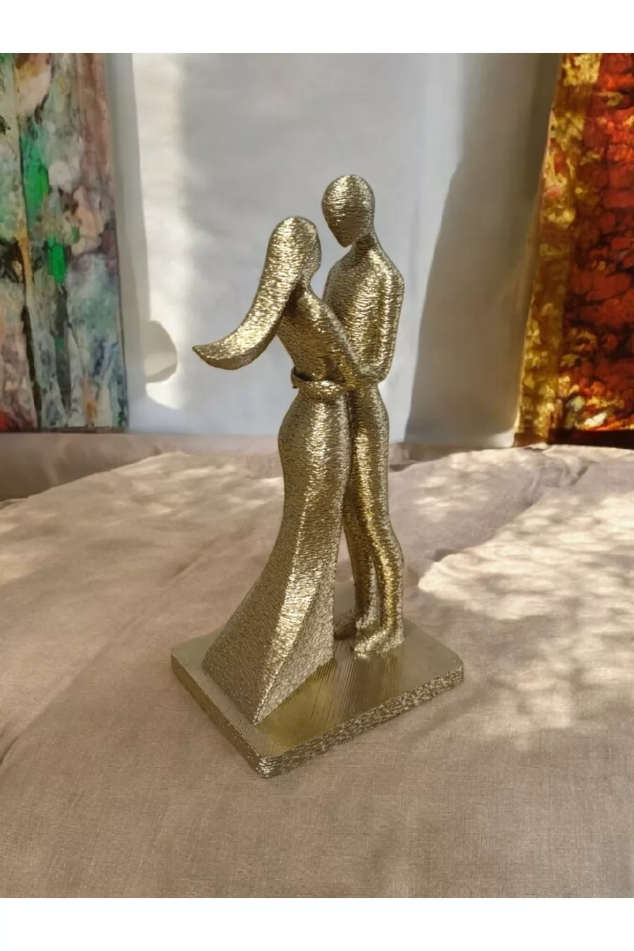 Altın Renkli Dekoratif Sarılan Sevgili Figür
