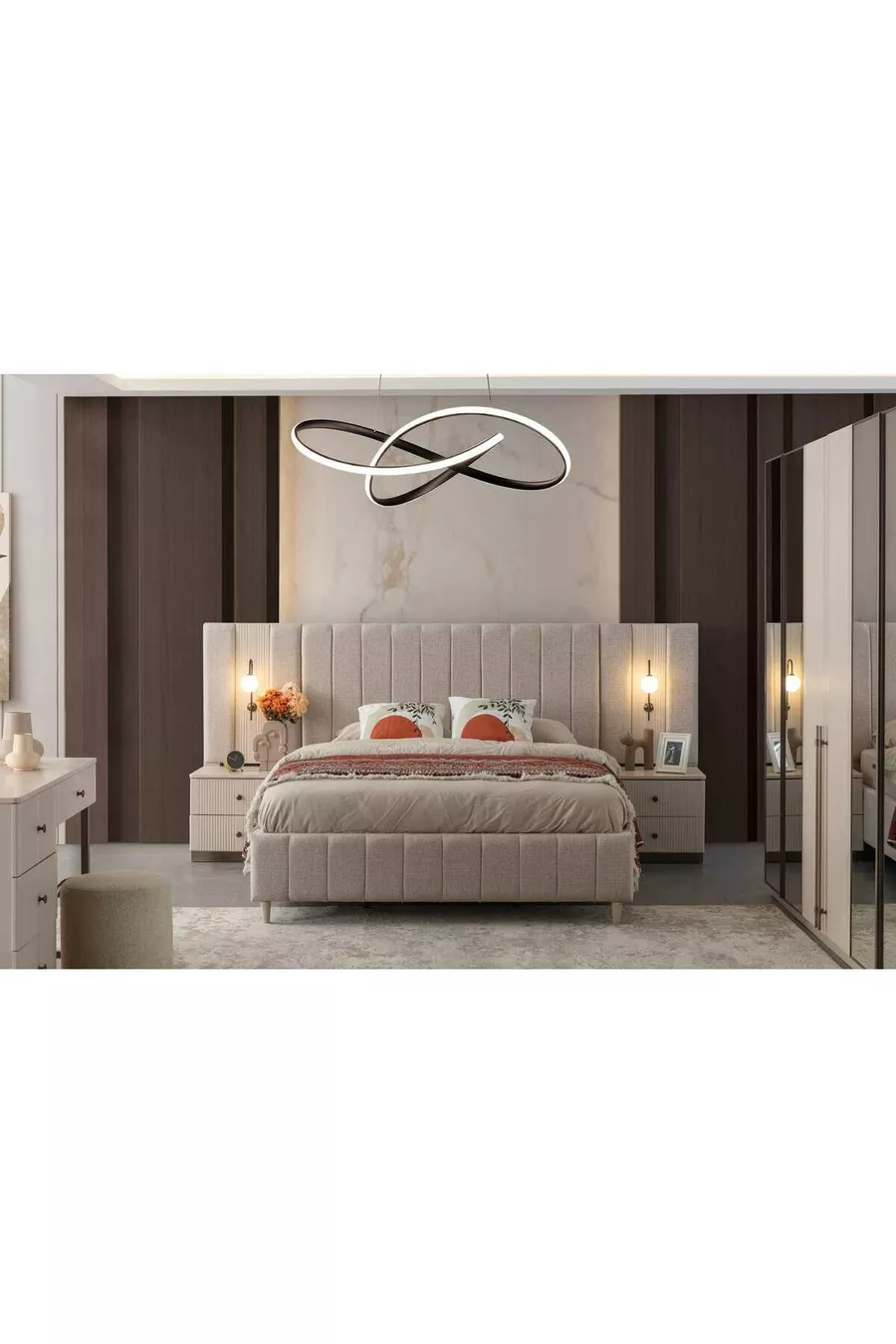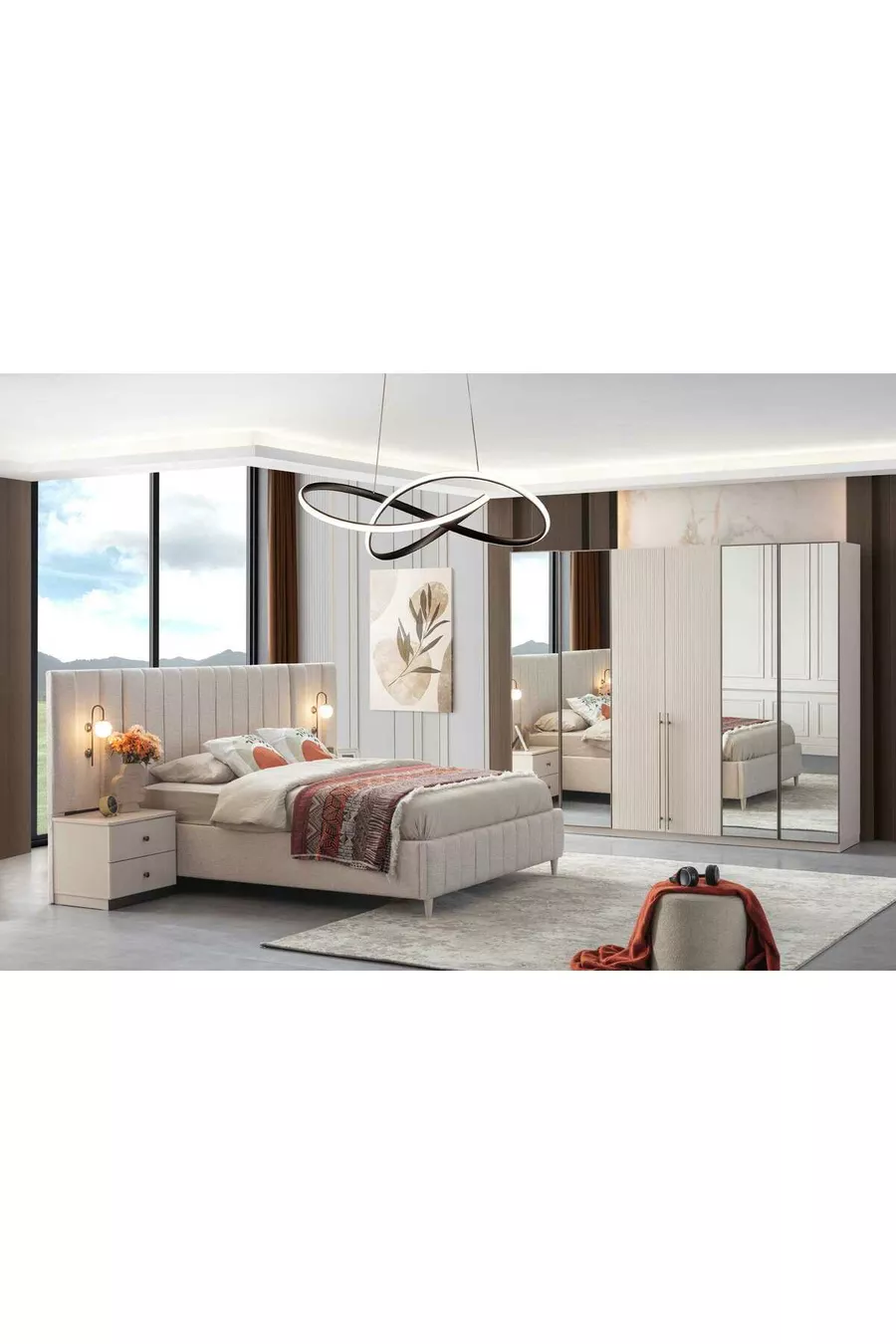 Set İçeriği:Bazalı Karyola + 2 Komodin + Şifonyer + Gardırop