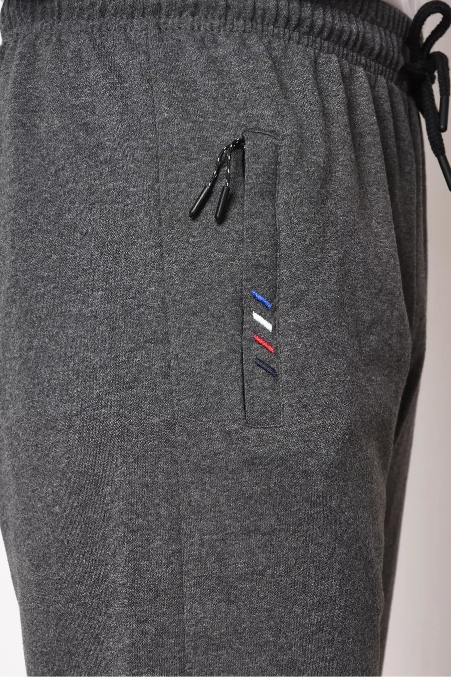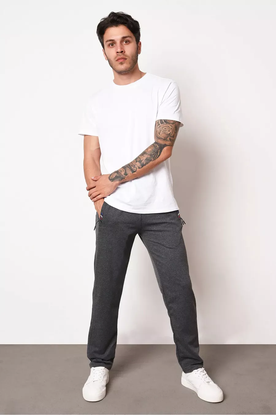 Antrasit Erkek Fermuar Cep Nakış Detaylı Düz Paça Rahat Kesim Premium Kumaş Eşofman Altı