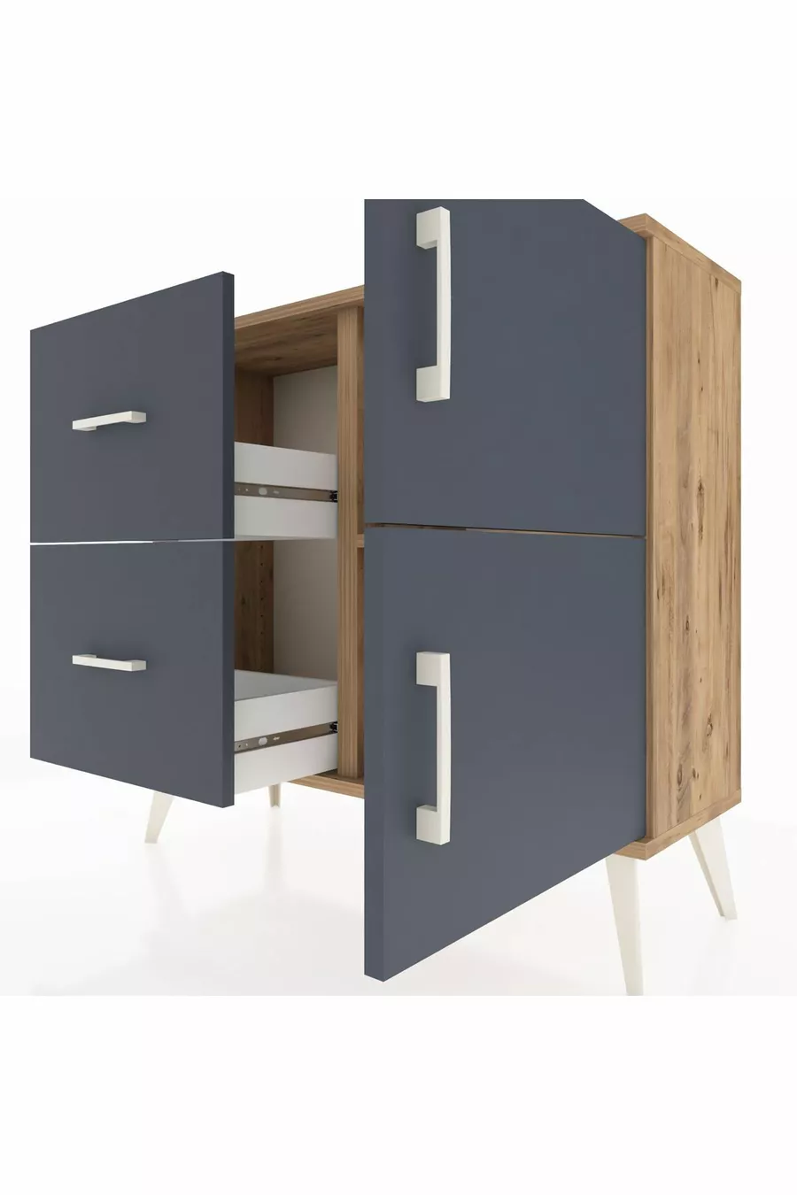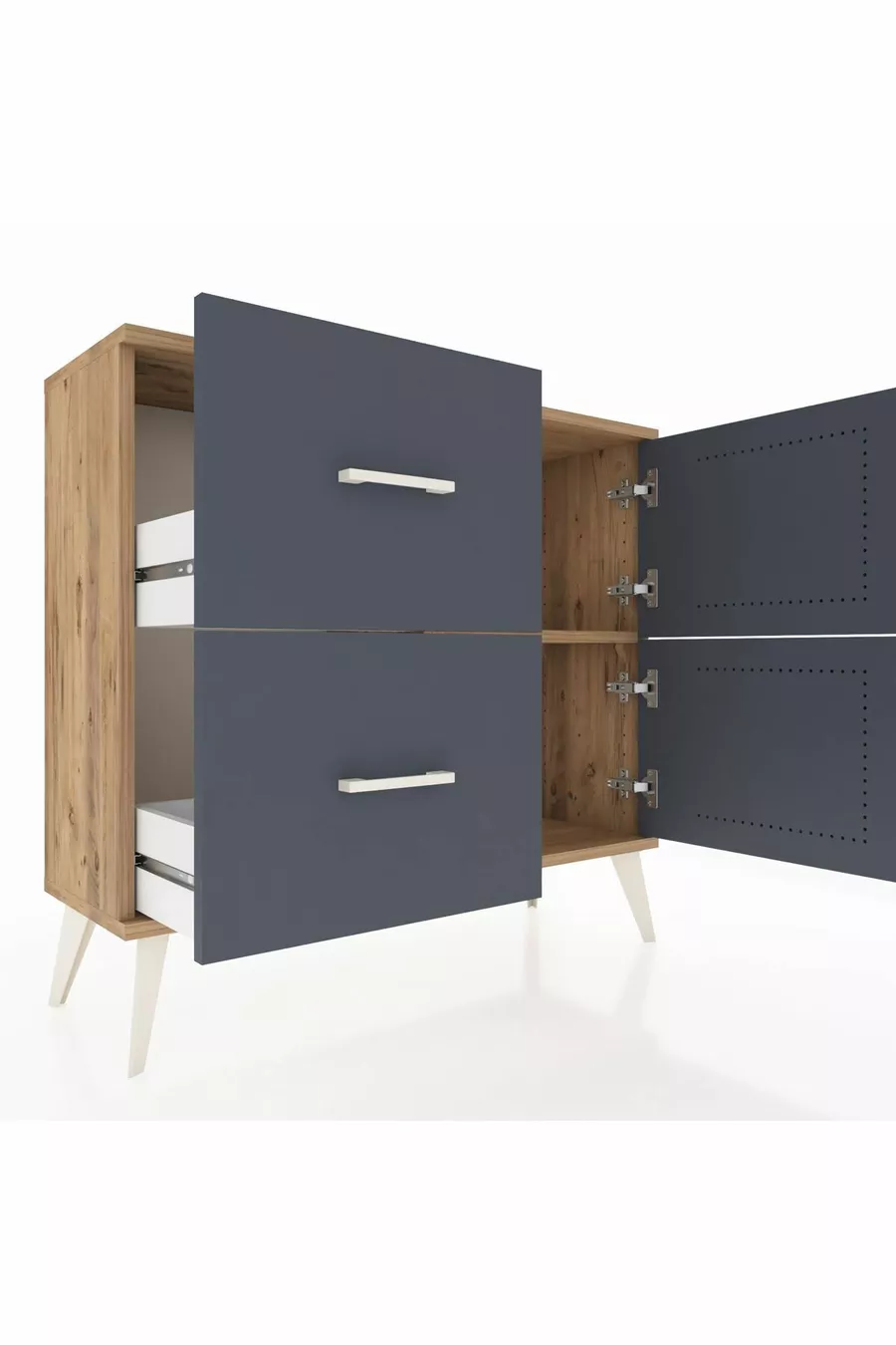 Arges Şifonyer Tek Raflı 2 Çekmeceli 2 Kapaklı Çam-Antrasit