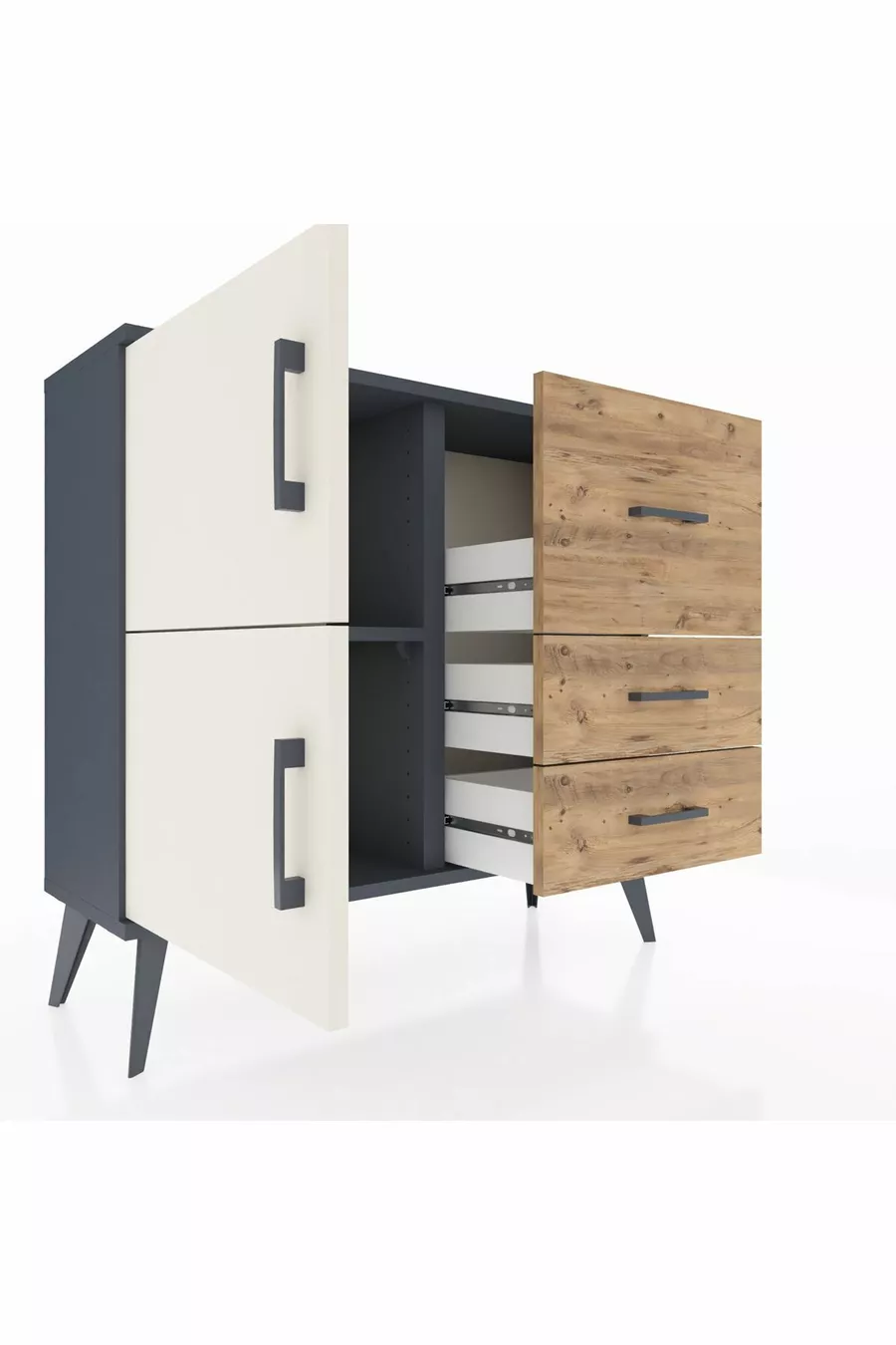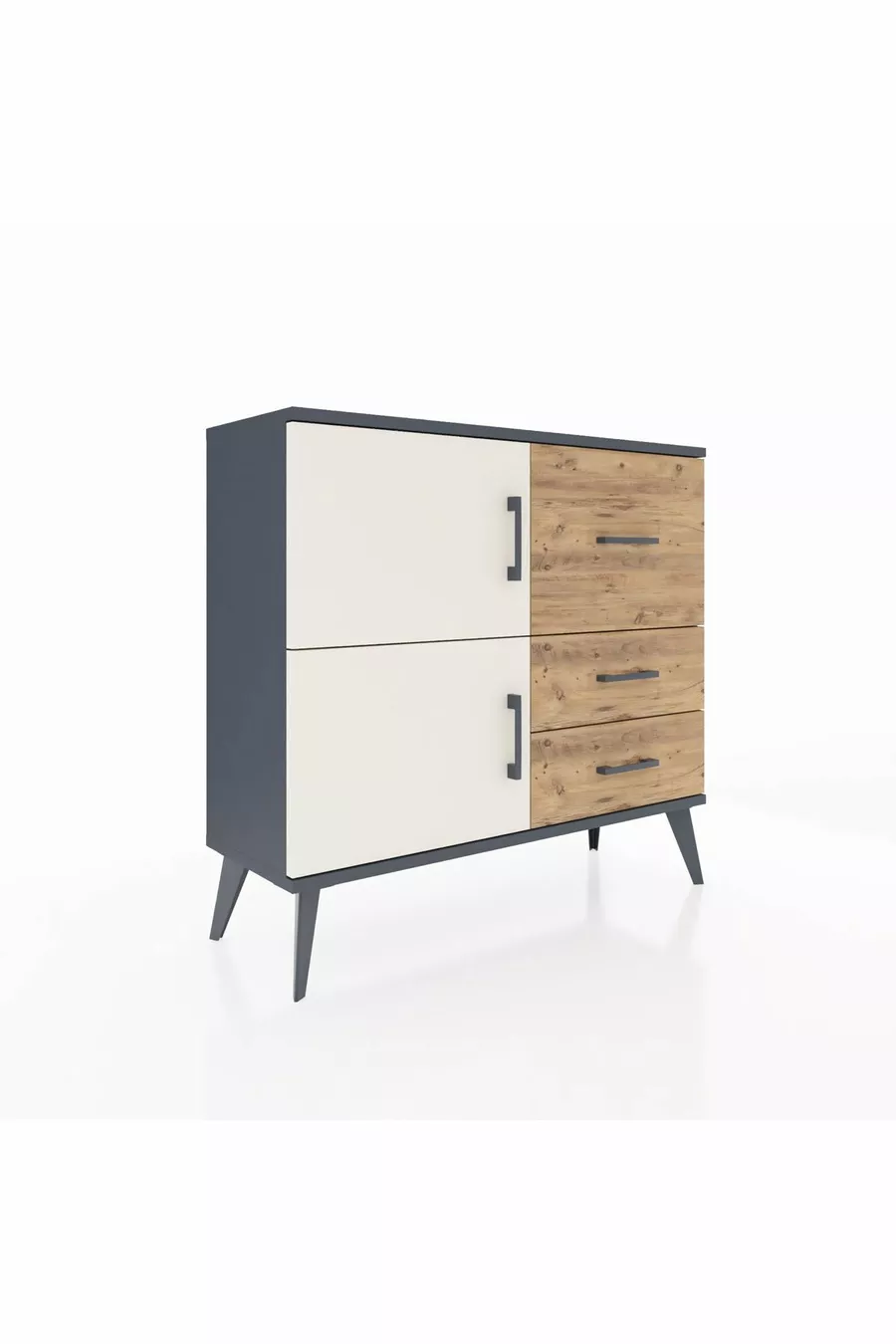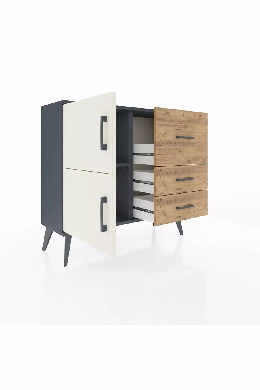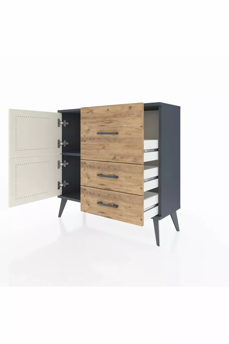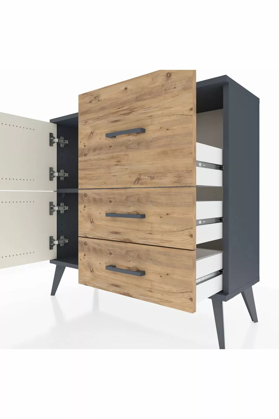 Arges Şifonyer Tek Raflı 3 Çekmeceli 2 Kapaklı Antrasit-Aytaşı/Çam