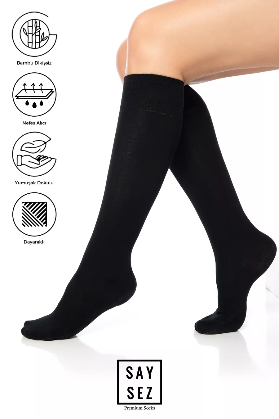 Bambu Kadın Dizaltı Düz Siyah Yumuşak Uzun Dikişsiz Çorap / Pantolon Çorabı / Teni Göstermeyen Çorap