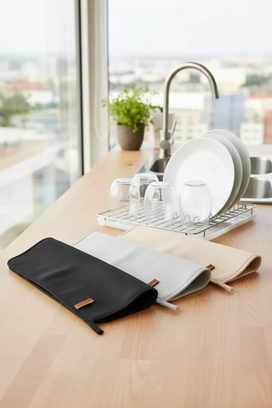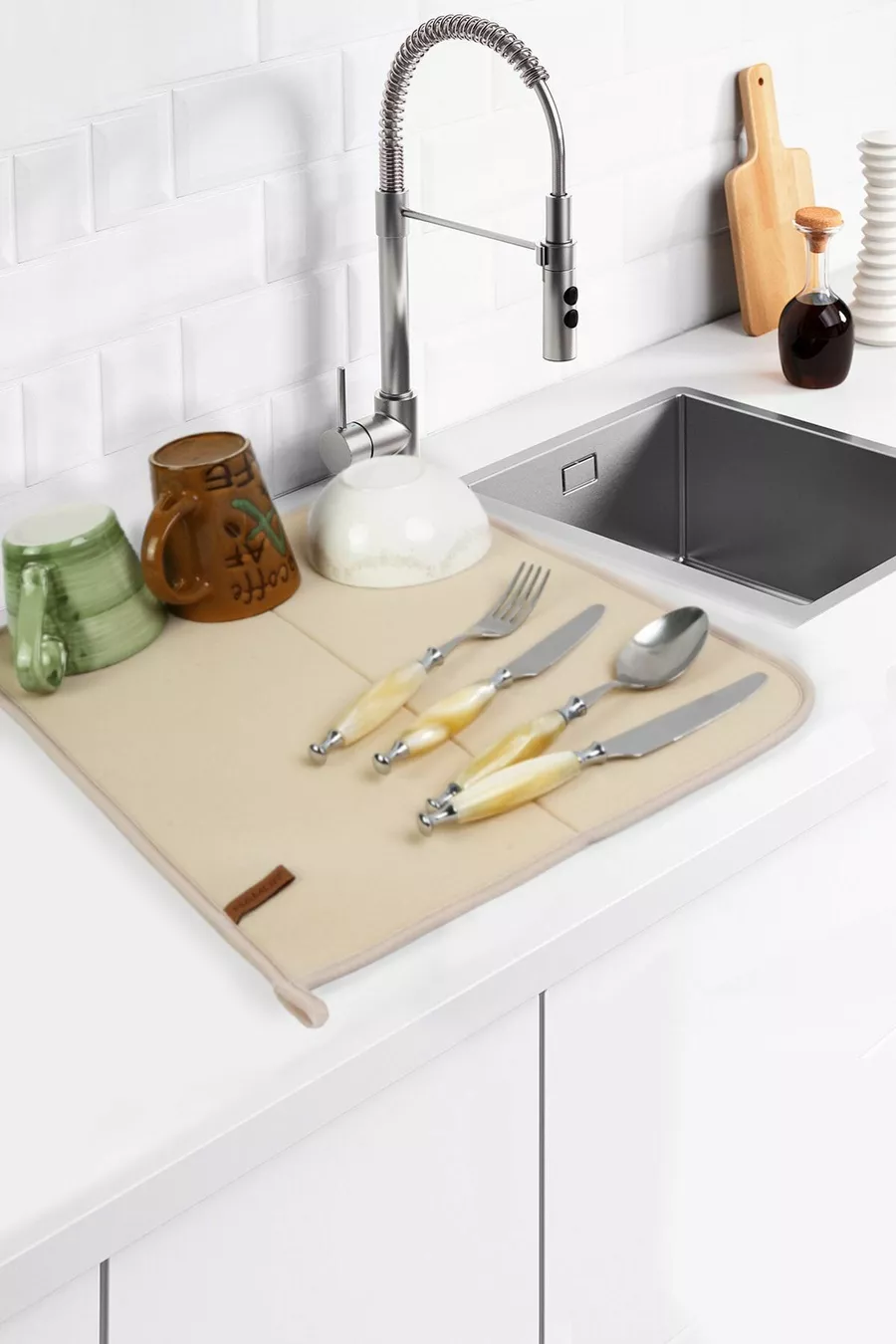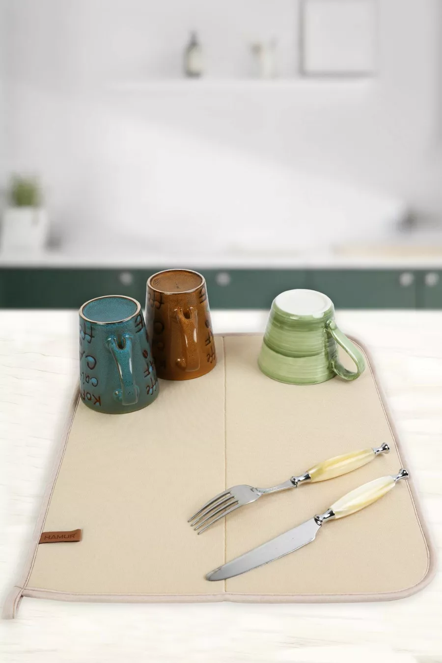 Basic Bulasik Kurutma Mati Kurulama Bezi Kurutma Örtüsü Tezgah Üstü Bej