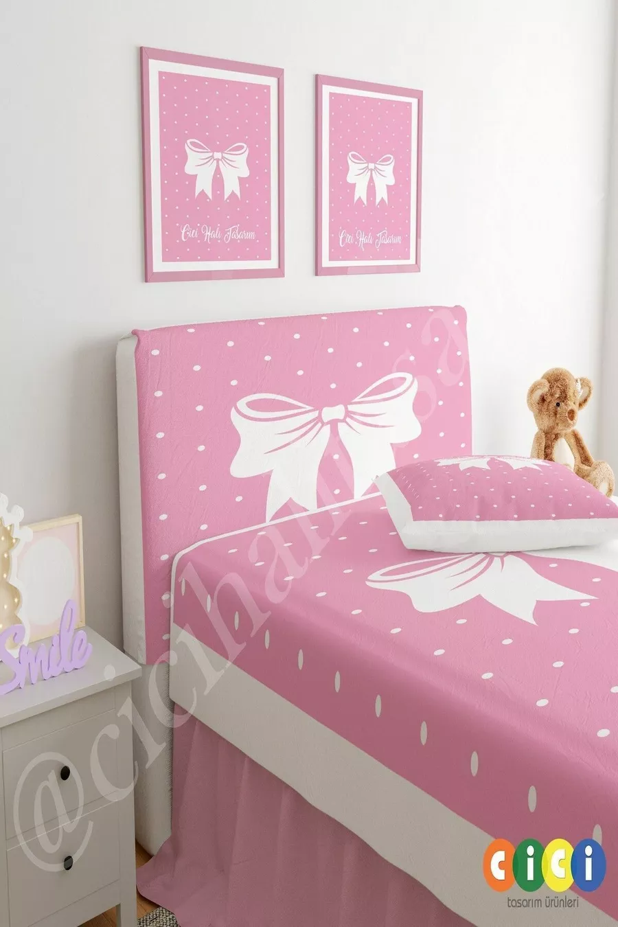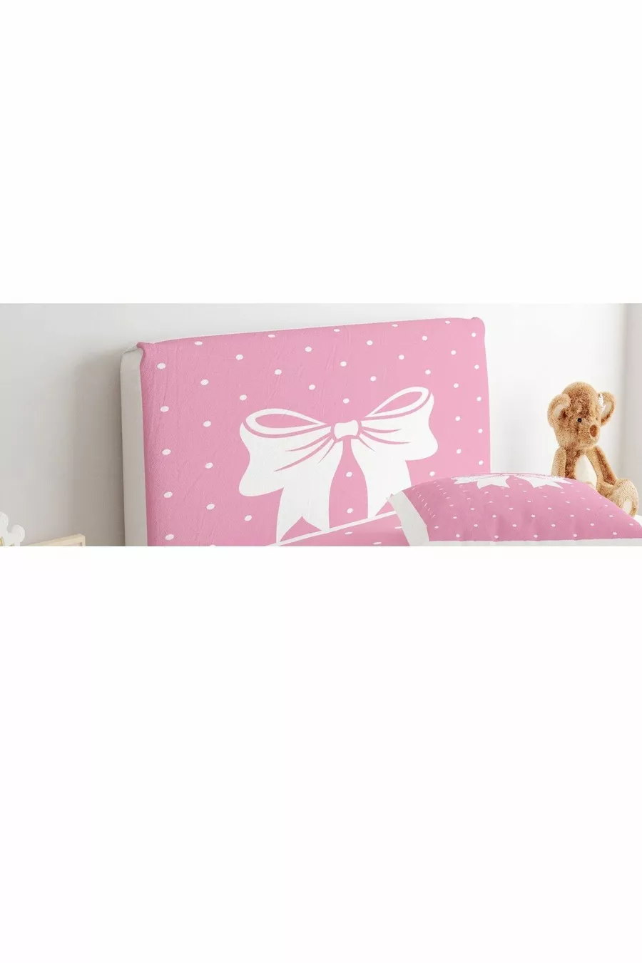 Baza Başlık Kılıfı Pembe Zemin Beyaz Puantiyeli Kurdale