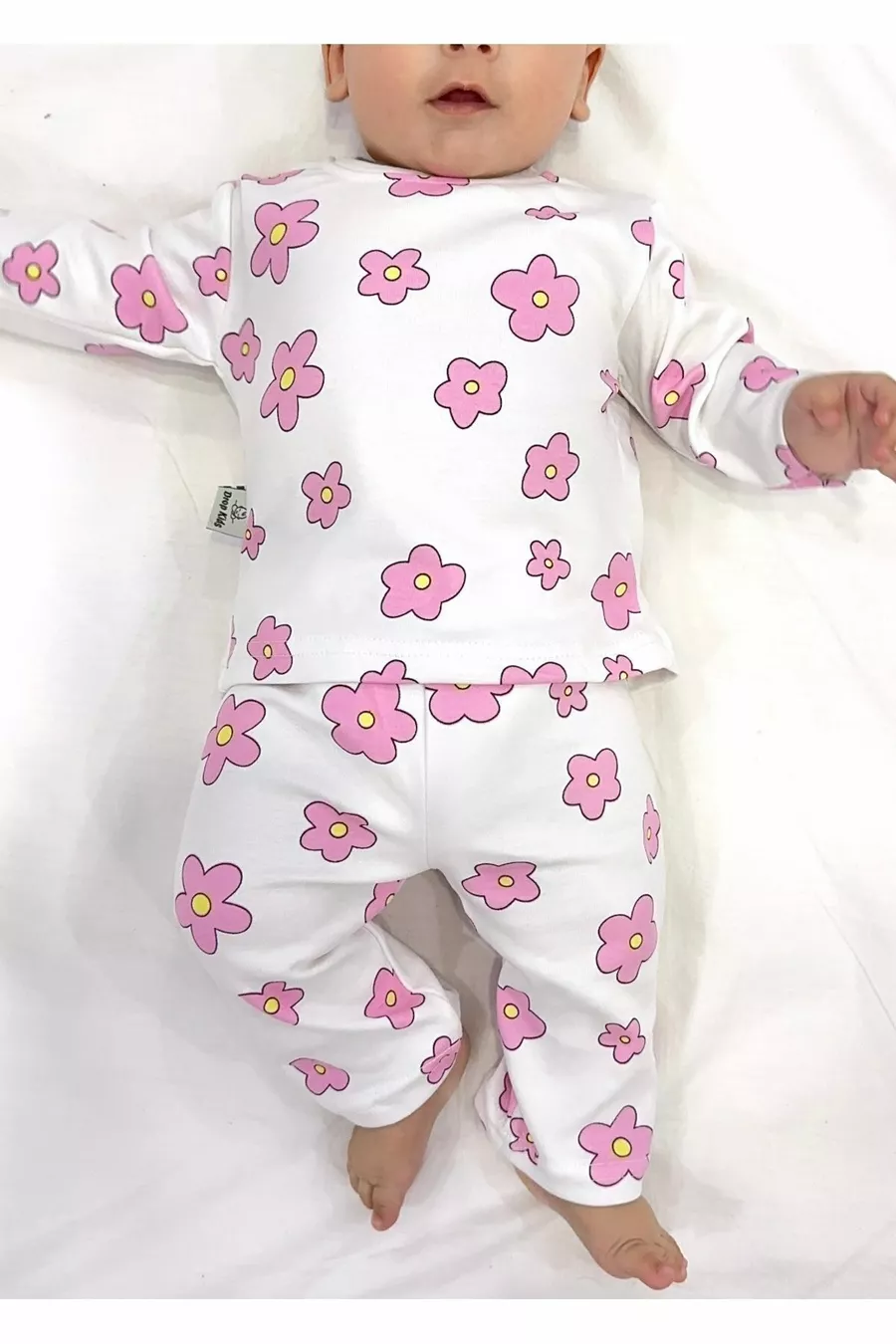 Bebek Pijama Uzun Pembe Çiçek Desen % Pamuk Yenidoğan Çocuk Pijama