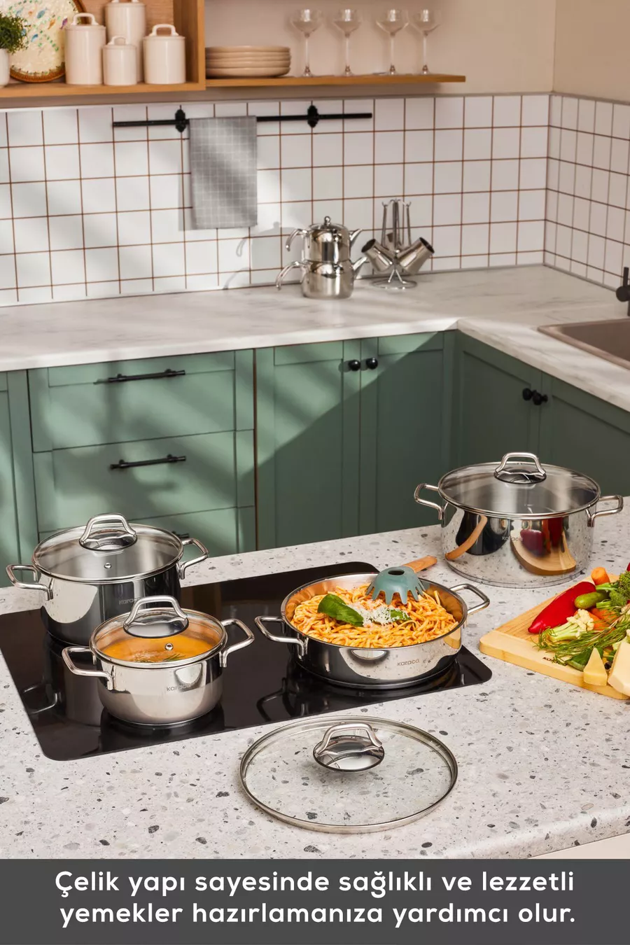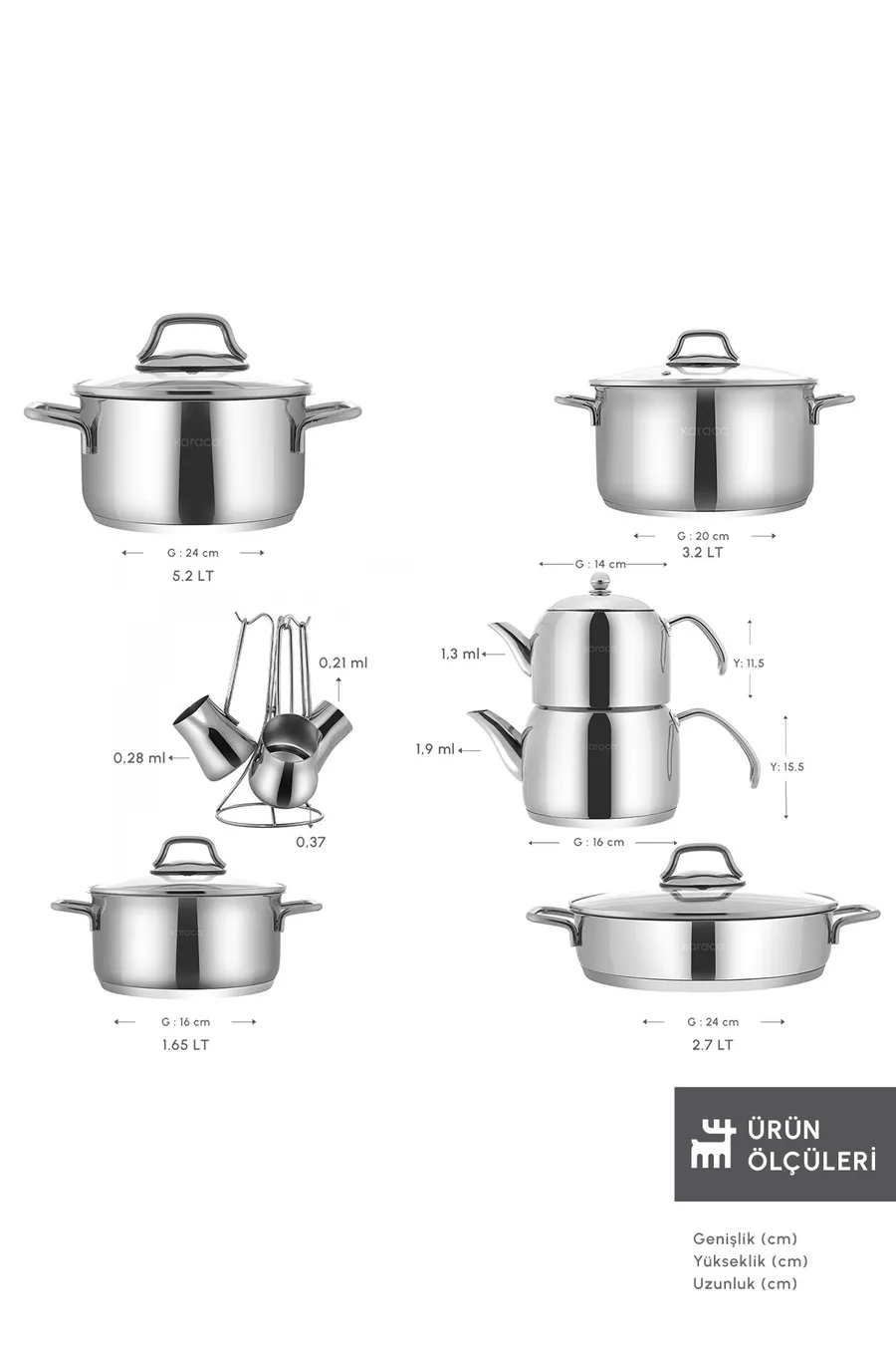 Renk:GümüşÖzellik:İndüksiyon Ocakta kullanılabilirDış Materyal:Çelikİç Materyal:ÇelikParça Sayısı:15Menşei:TRMateryal:Çelik