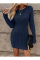 BİSİKLET YAKA SAÇ ÖRGÜLÜ TRİKO ELBİSE