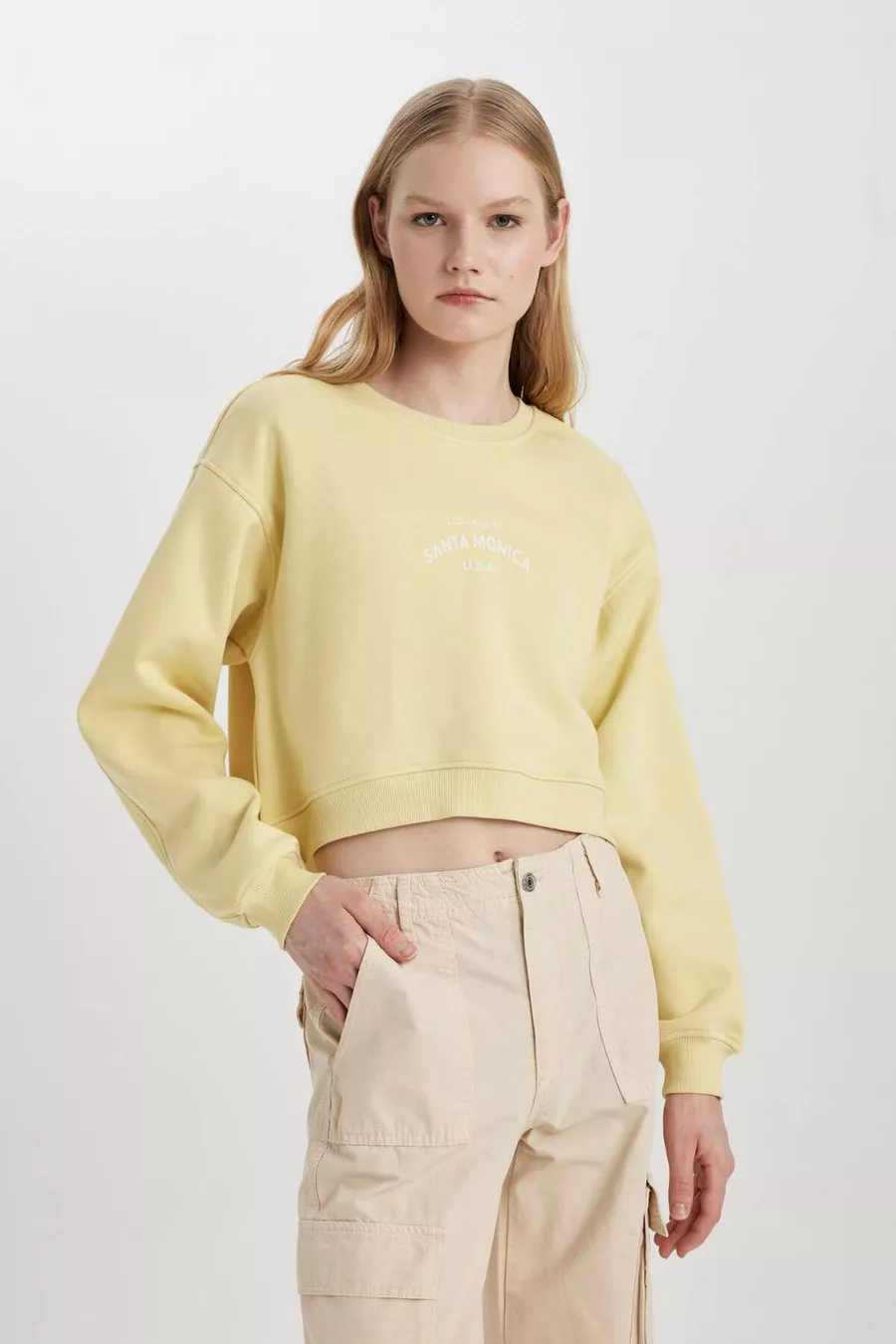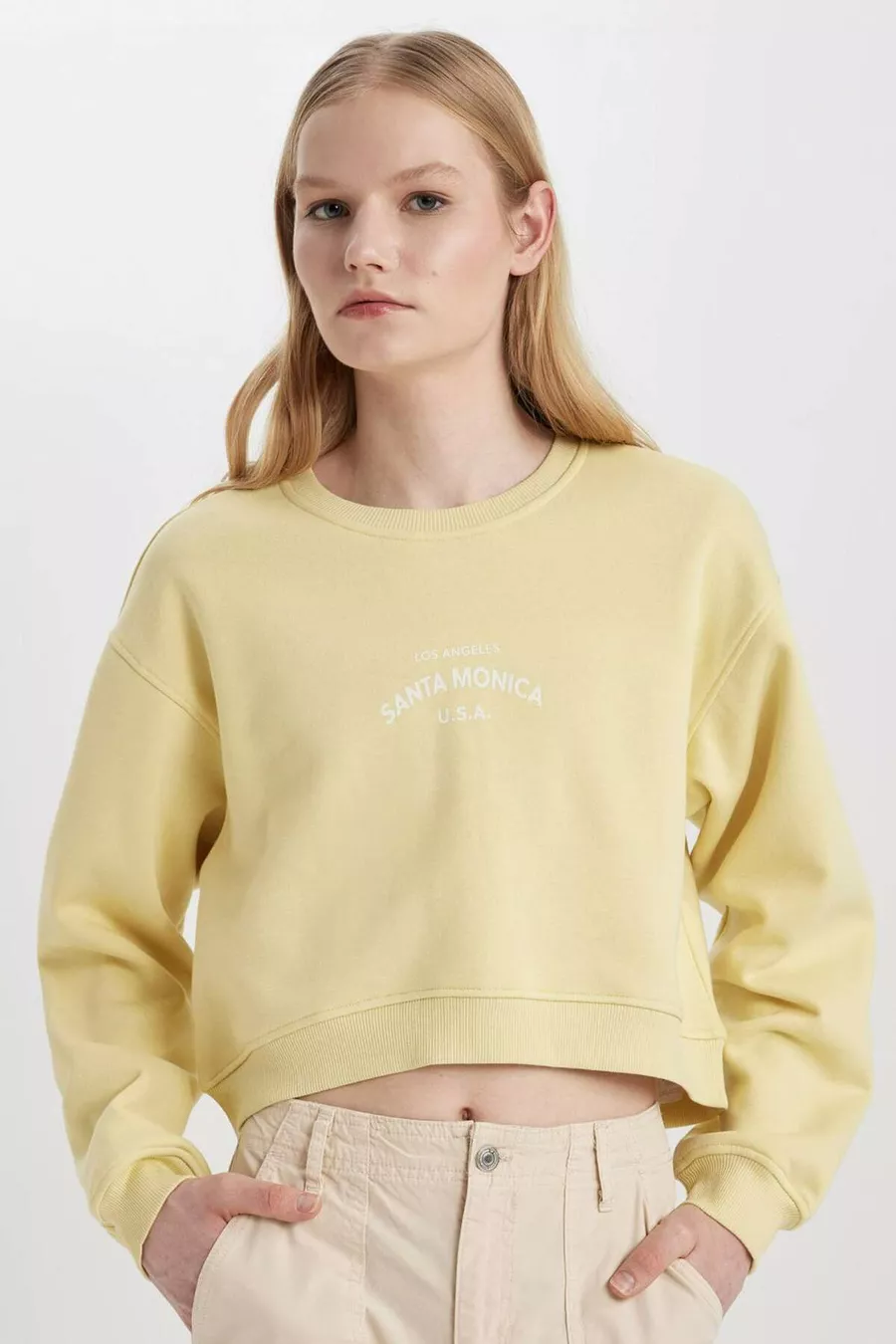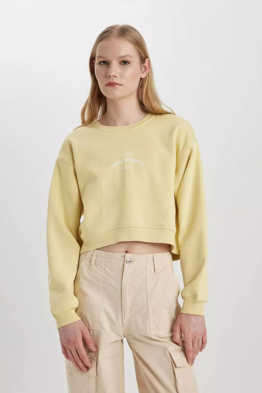 Boxy Fit Bisiklet Yaka Baskılı Kalın Sweatshirt CW