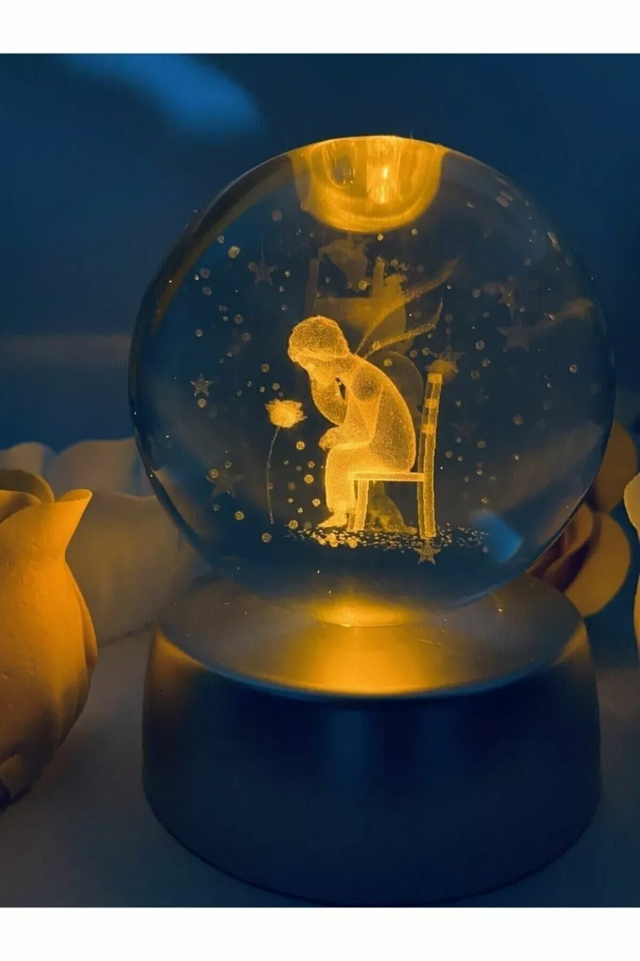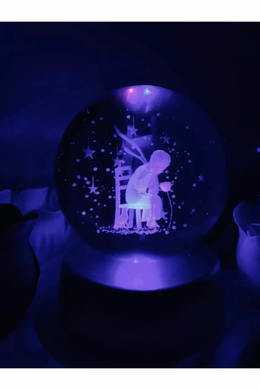 Düşünen Çocuk Küçük Prens Gül Figürlü Işıklı Cam Küre