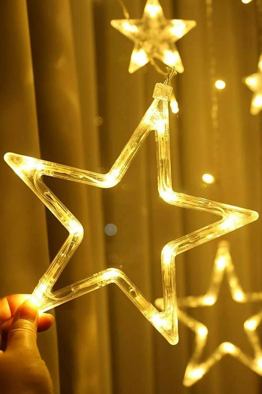 Dekoratif 8 Fonksiyonlu Yıldız Desenli Perde Led Sarkıt Ip Led