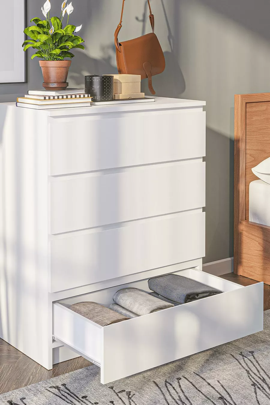 Derinkuyu 4 Çekmeceli Şifonyer Yatak Odası Bebek Odası Beyaz