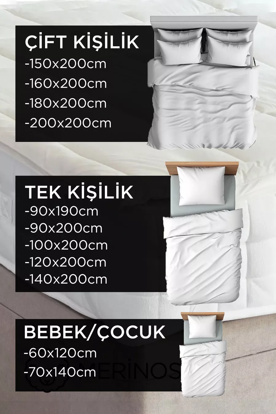 % Doğal Kuzu Yünü Yatak Pedi | Özel Çantalı Doğal Merinos Yün Ped Tek Çift Battal