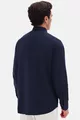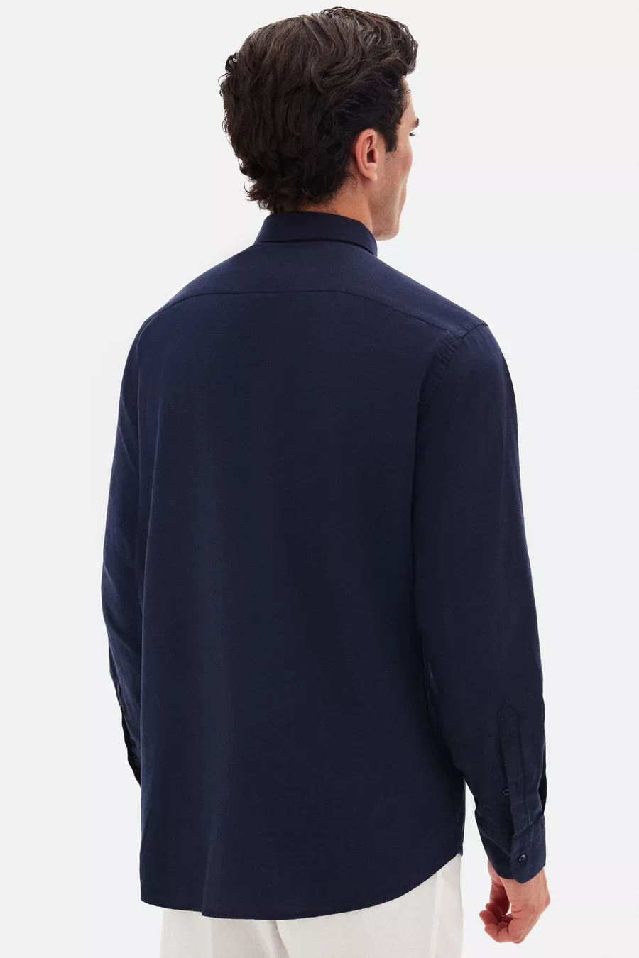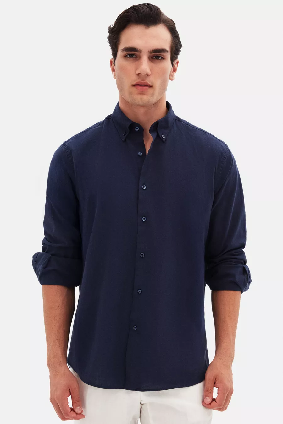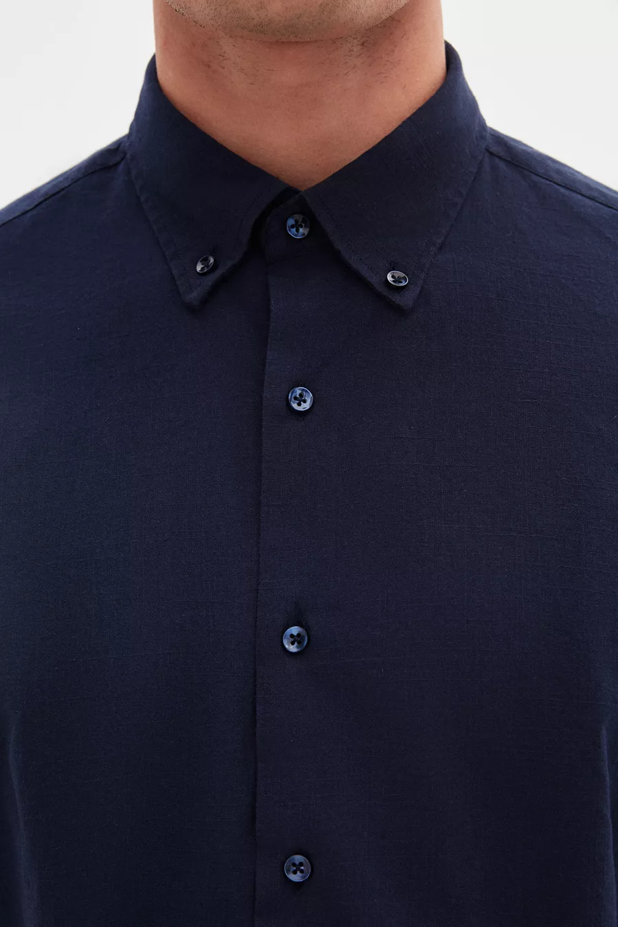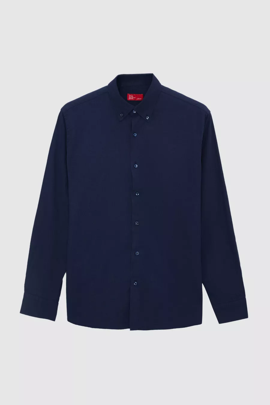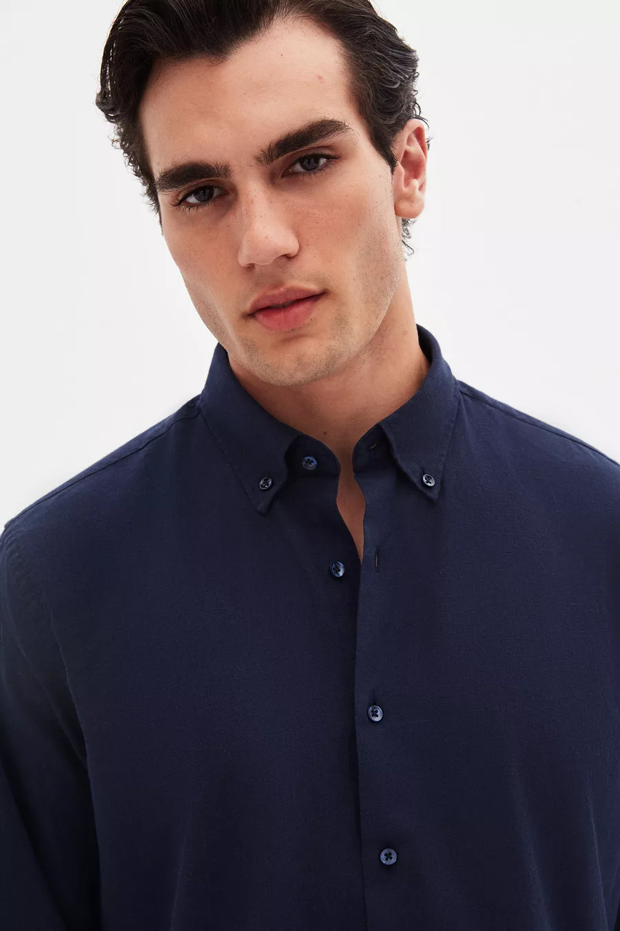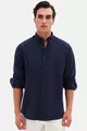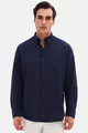 Ds Damat Comfort Lacivert Düğmeli Yaka Rahat Kesim Keten Görünümlü % Pamuk Gömlek