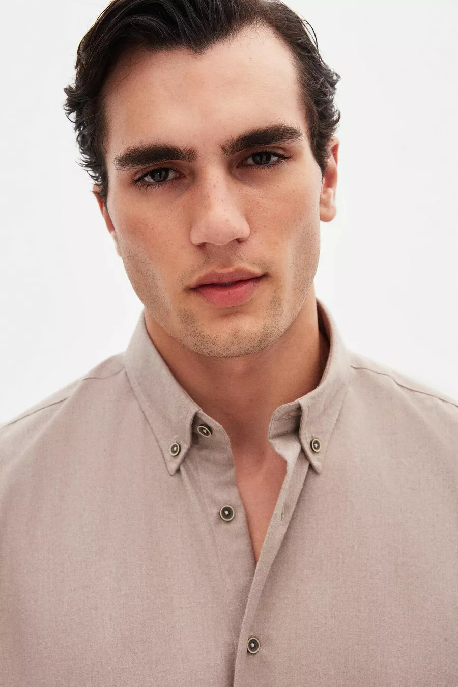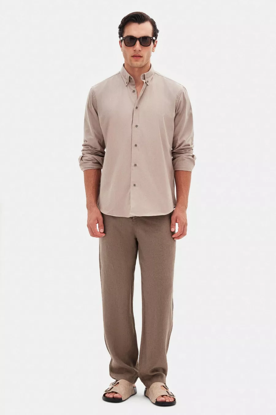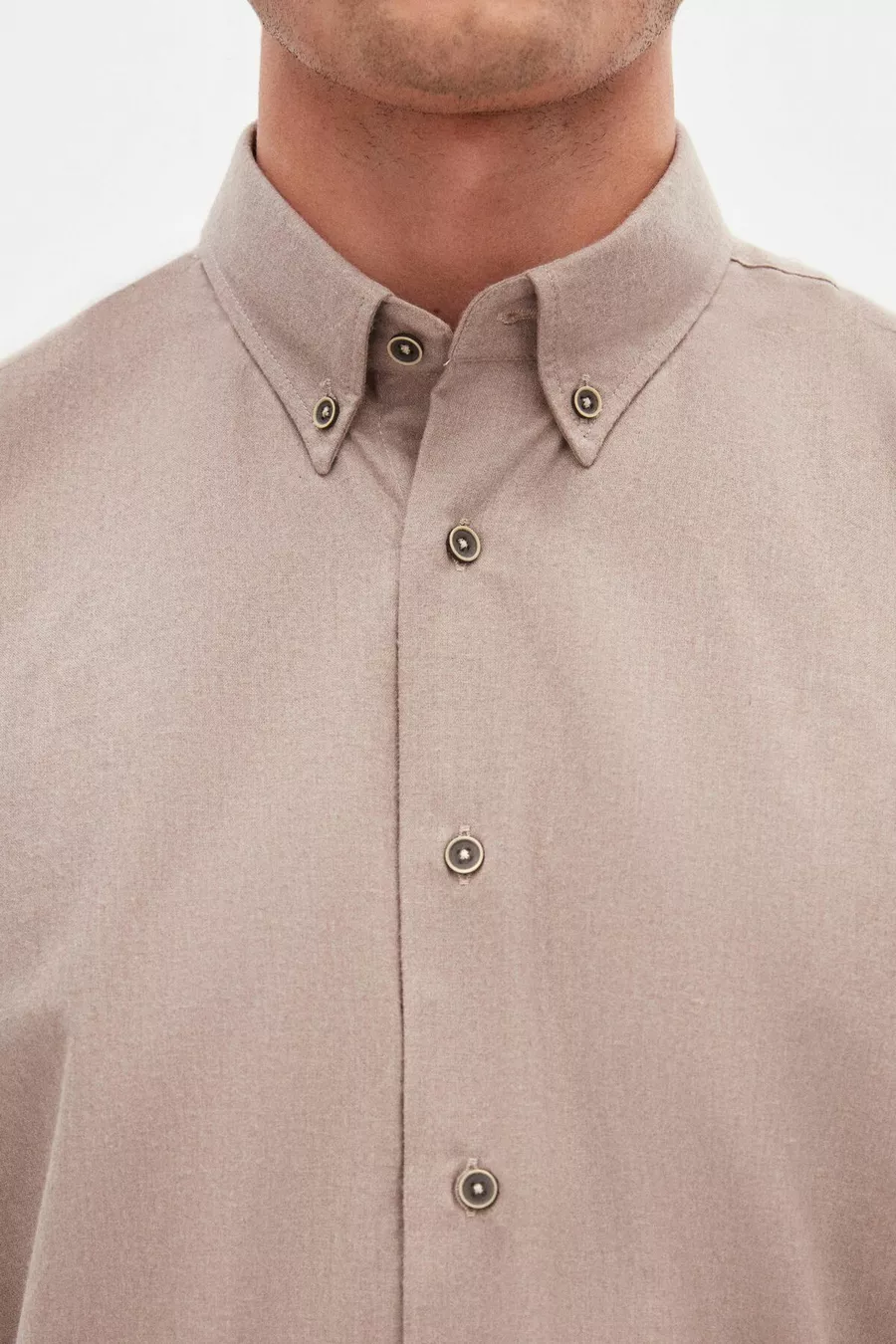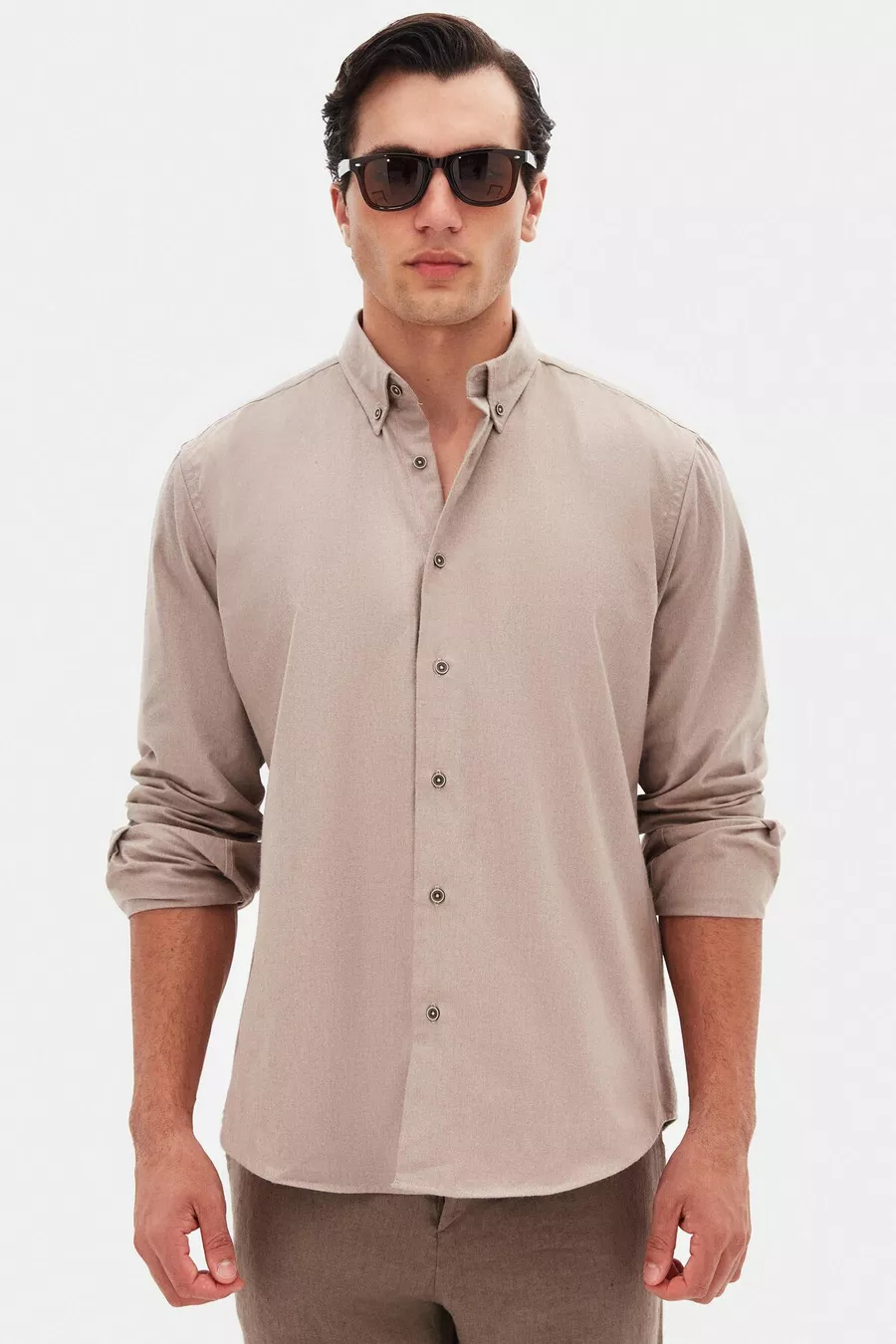 Ds Damat Regular Fit Vizon Düz Kışlık Flanel Gömlek