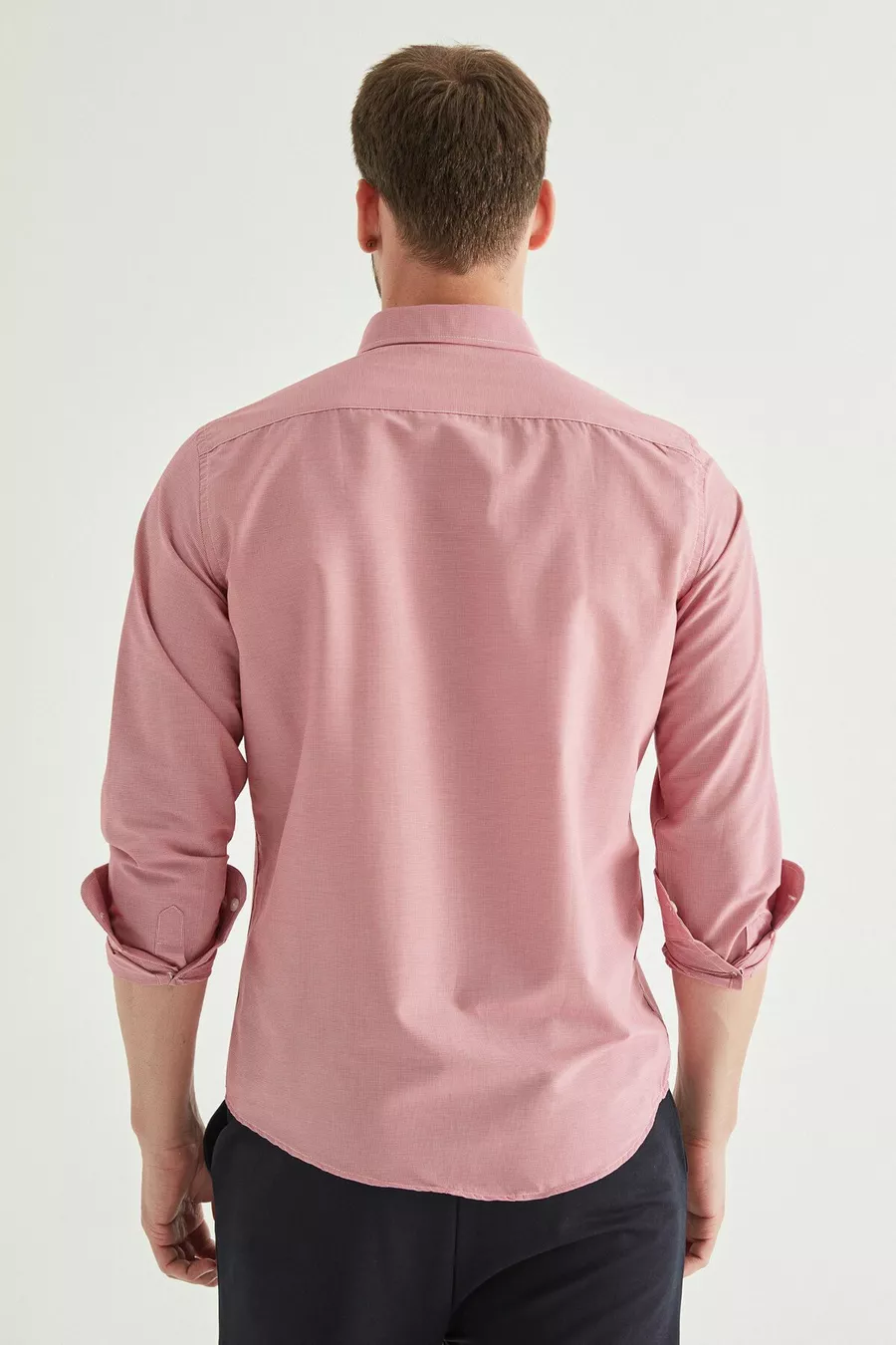 Ds Damat Slim Fit Fuşya Pötikare Gömlek