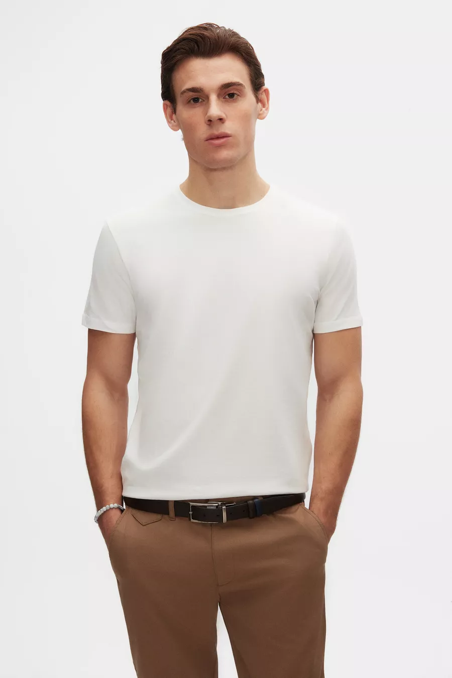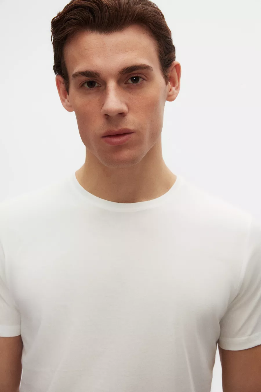 Ds Damat Slim Fit Beyaz Bisiklet Yaka % Pamuklu Nefes Alabilen T-Shirt