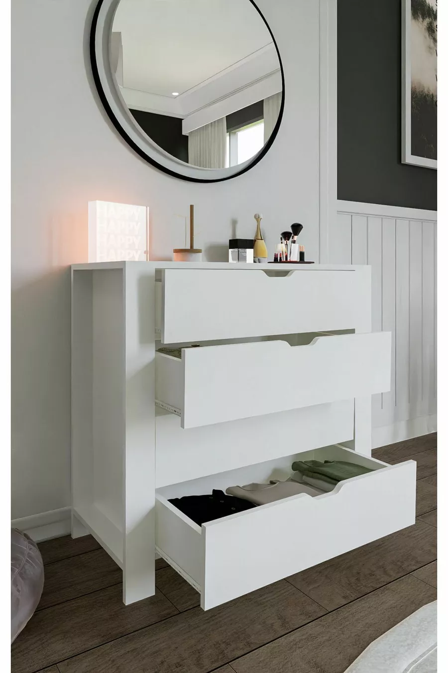 Renk:BeyazGaranti Süresi:2 YılMateryal:SuntalamYükseklik:85 cmGenişlik:90 cmDerinlik:42 cmÇekmece Sayısı:4Ürün Özelliği:ÇekmeceliStil:ModernTema / Stil:ModernÖzellik:Çekmeceli